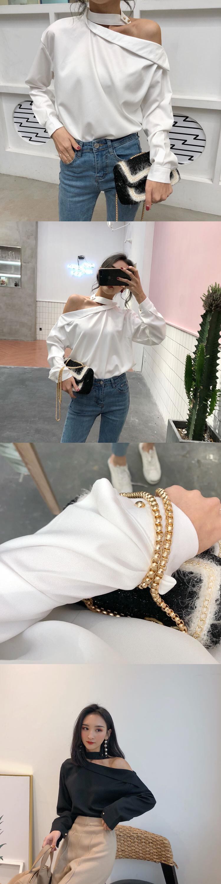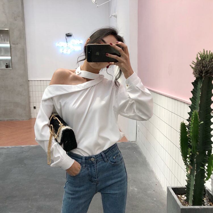 スタンダードカラーストラップレスホワイトシャツ レディース ロング レトロ YY-ファッション22570798064