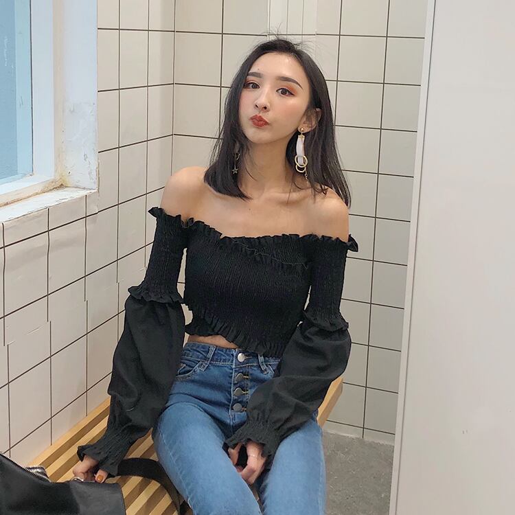 レースクロスワンショルダーソリッド カラースリーブショートトップス ソリッドカラー YY-ファッション54546721738