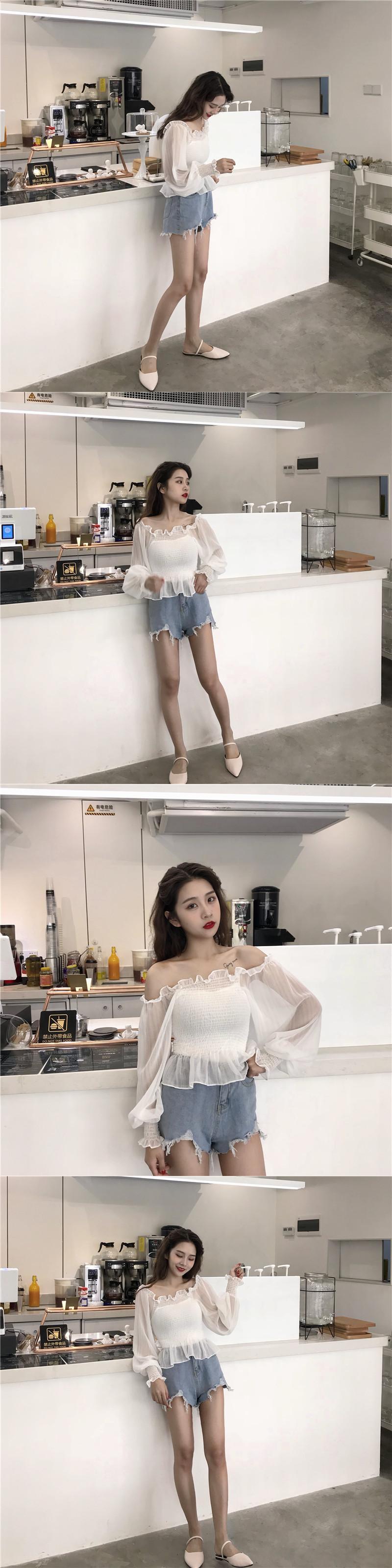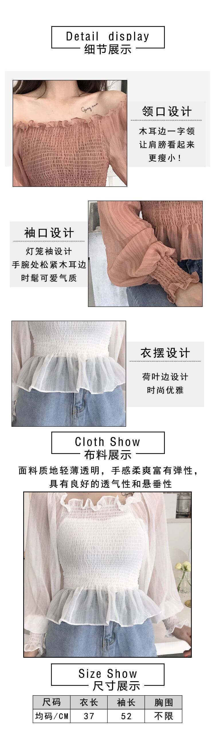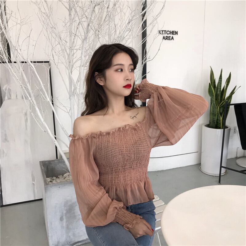サマースタイルストラップレススリーブシフォンシャツ トップス ランタンスリーブ 夏物 YY-ファッション36572530082