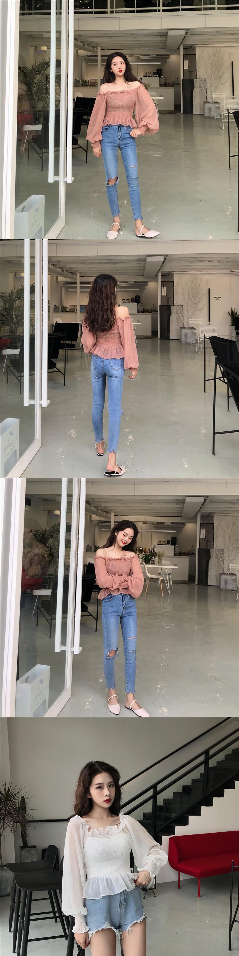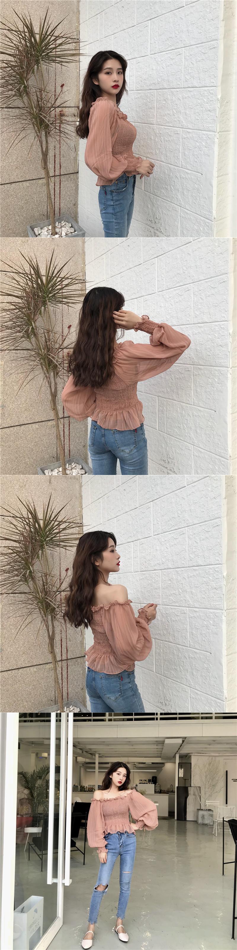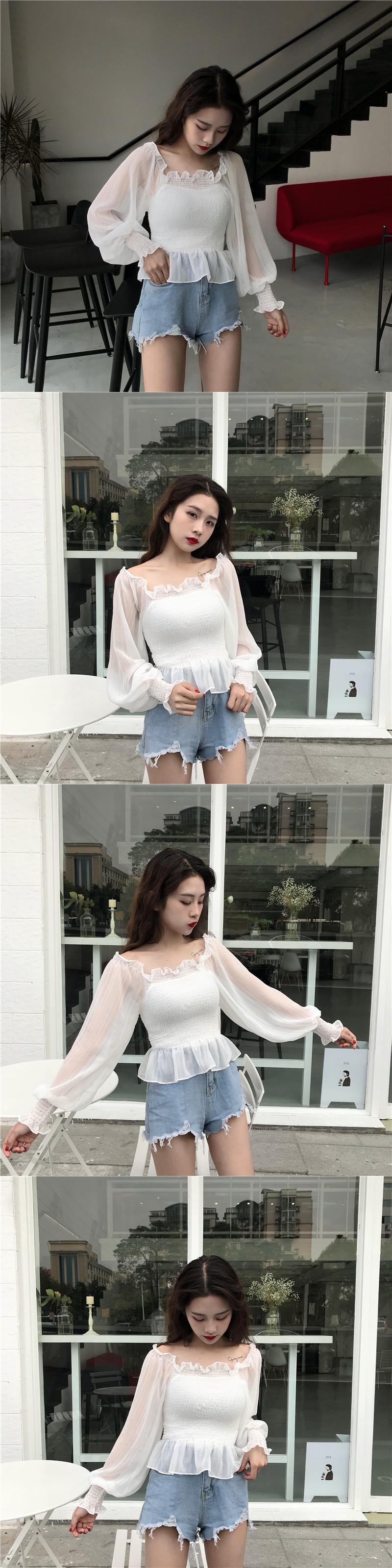 サマースタイルストラップレススリーブシフォンシャツ トップス ランタンスリーブ 夏物 YY-ファッション36572530082