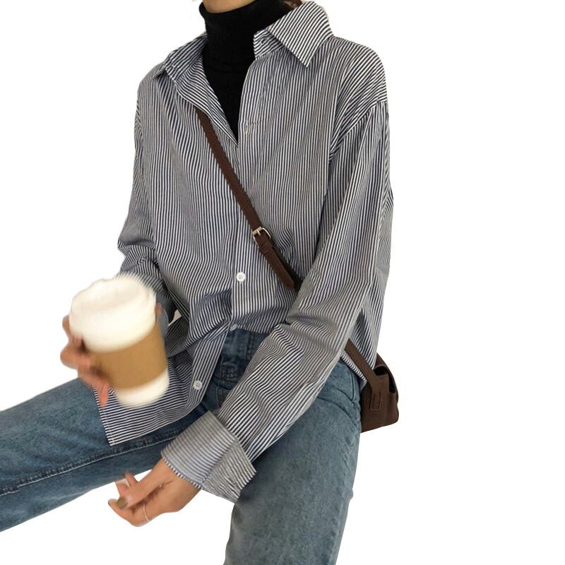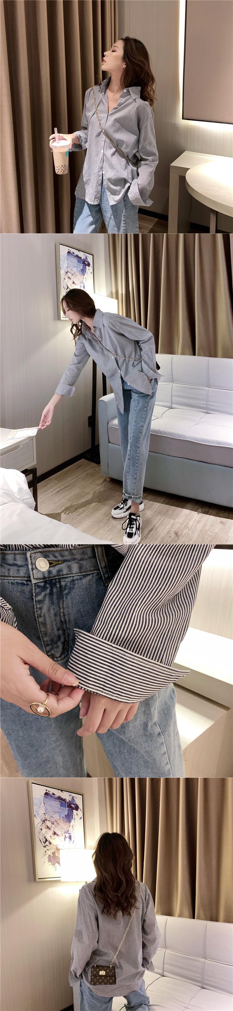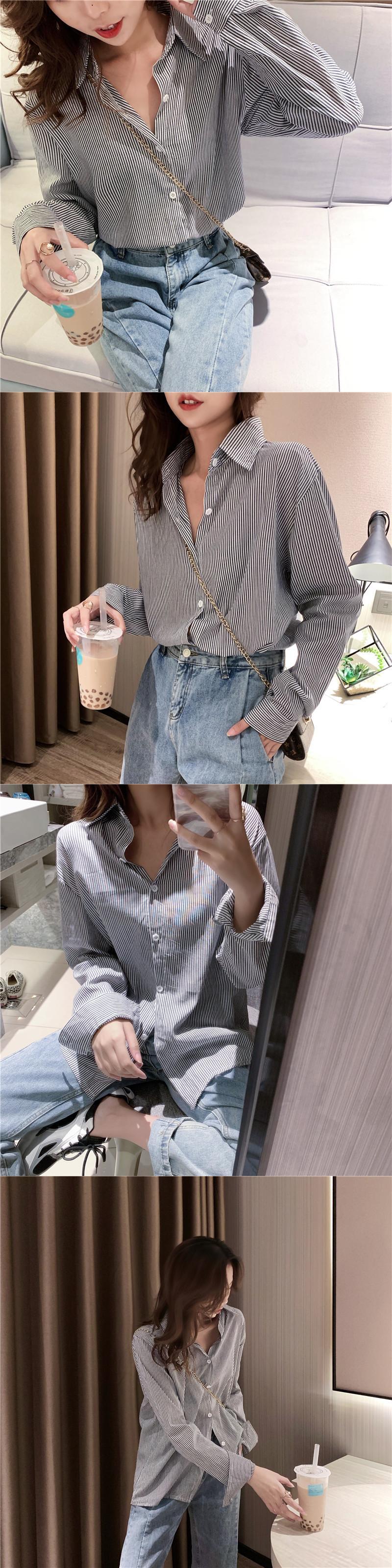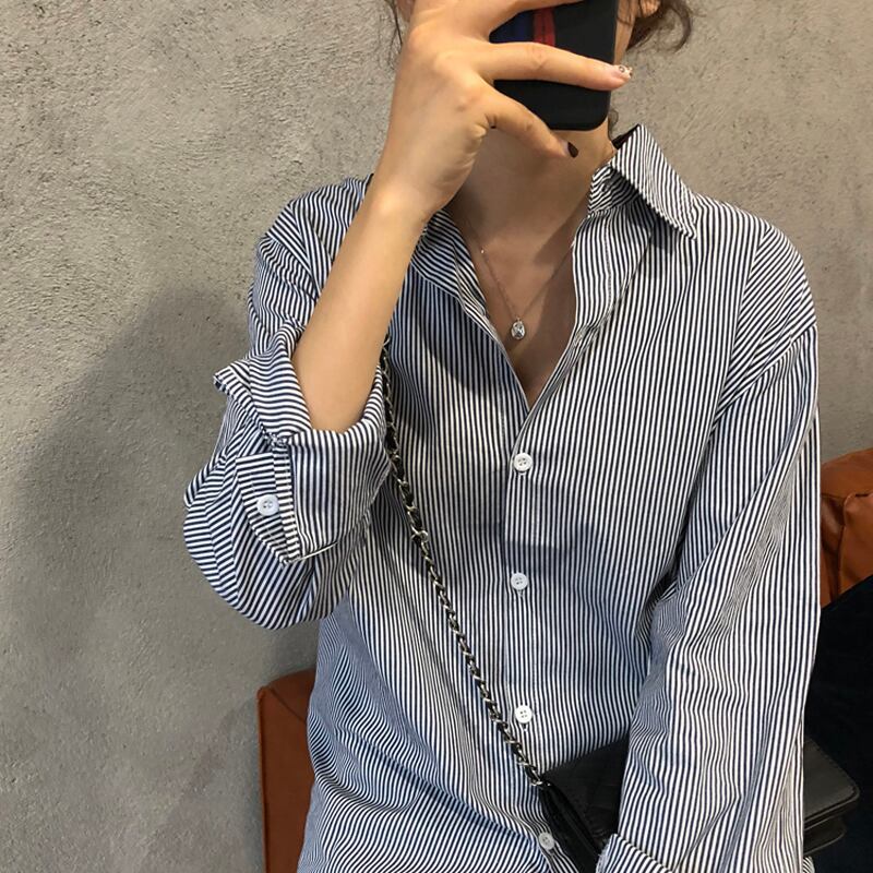 シックなスタイルのファンシンプルなトップスの女性2020年夏の新入生シャツのピンストライプルーズシャツ YY-ファッション91922927153