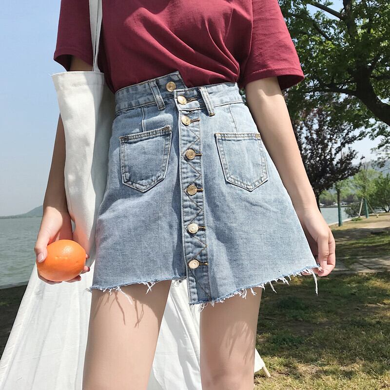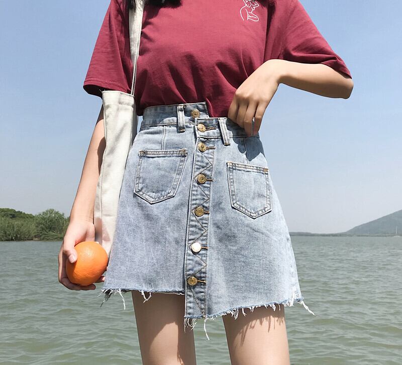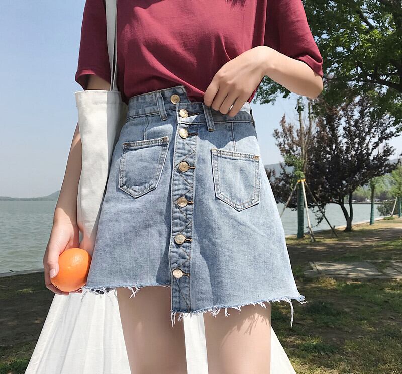 2020年夏新作洗濯シングルブレストウエストデニムスカート不規則脱臼バリ一言スカート潮 YY-ファッション88764122724