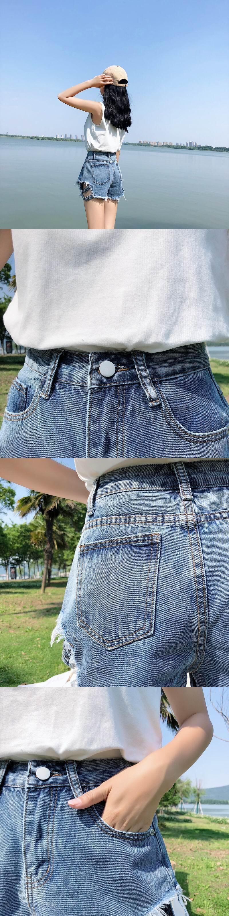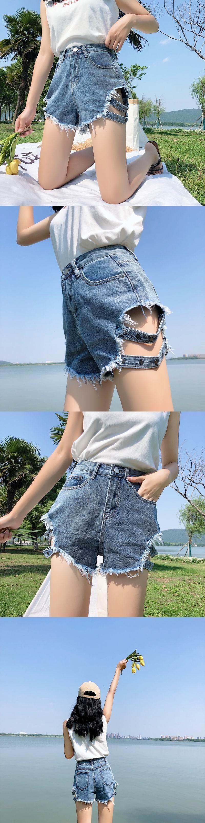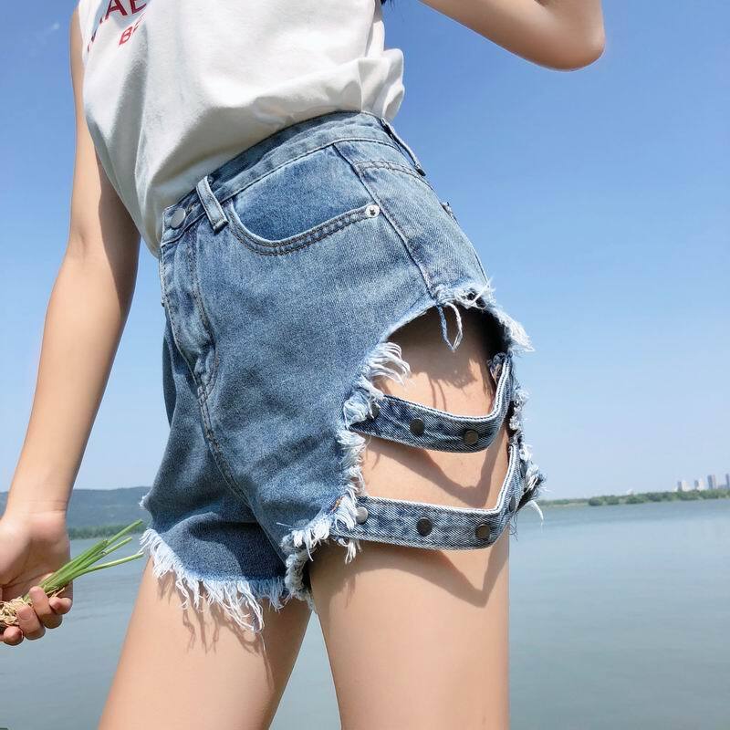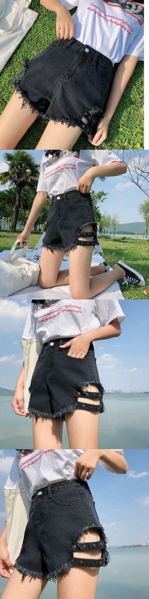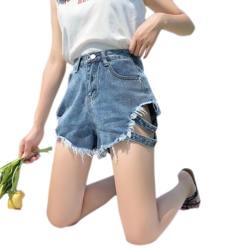 夏のニュースタイルサイドデニムショーツレディースルーズウェアホールハイウエストパンツワイドレッグパンツトレンディ YY-ファッション49294272386
