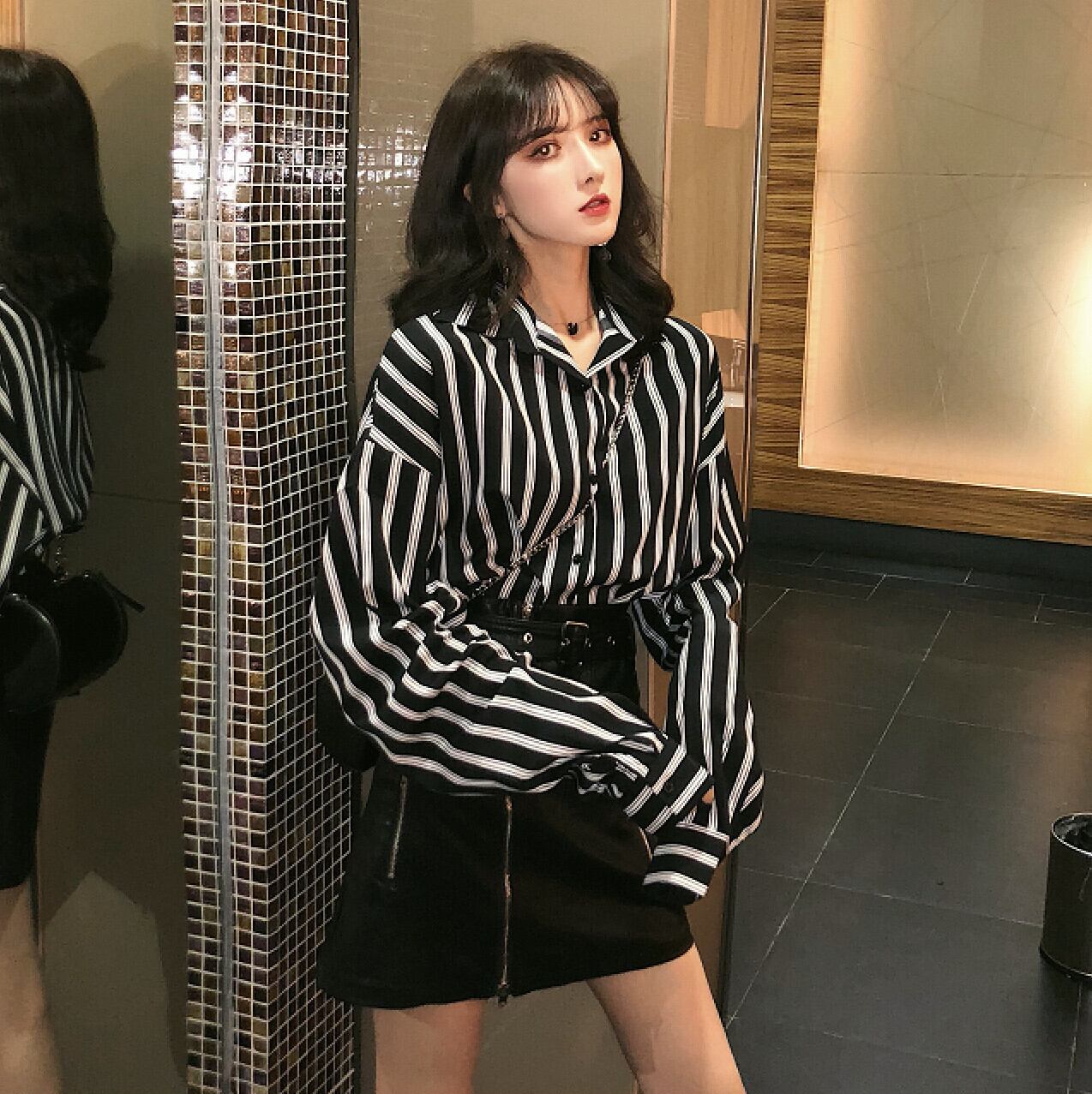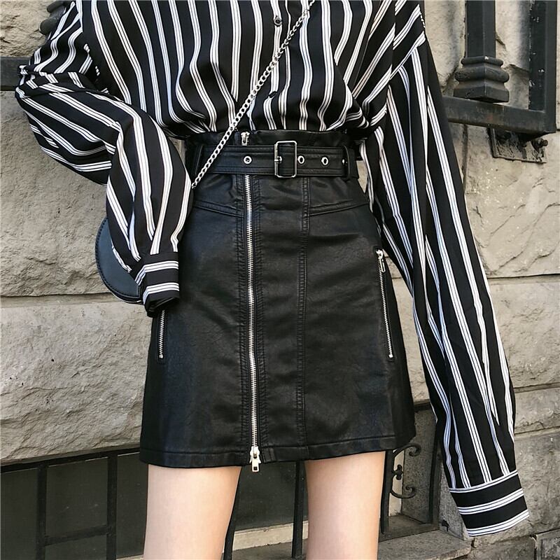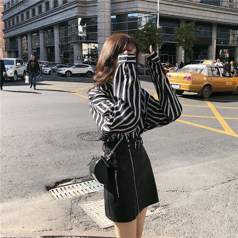 夏の新商品ストライプ長袖シャツ+ PUレザースカートハイウエストスカートツーピースファッションスーツレディース YY-ファッション67342855610