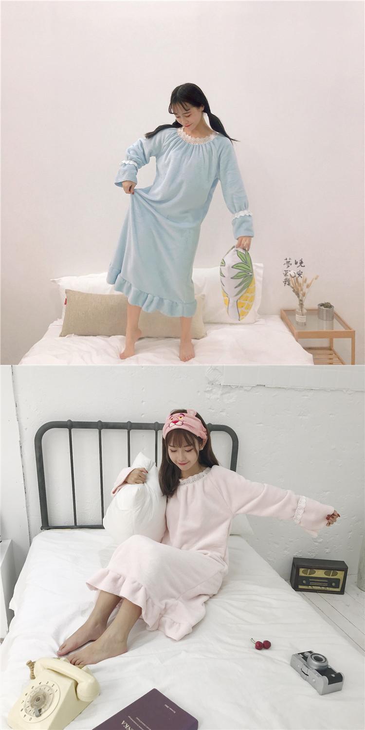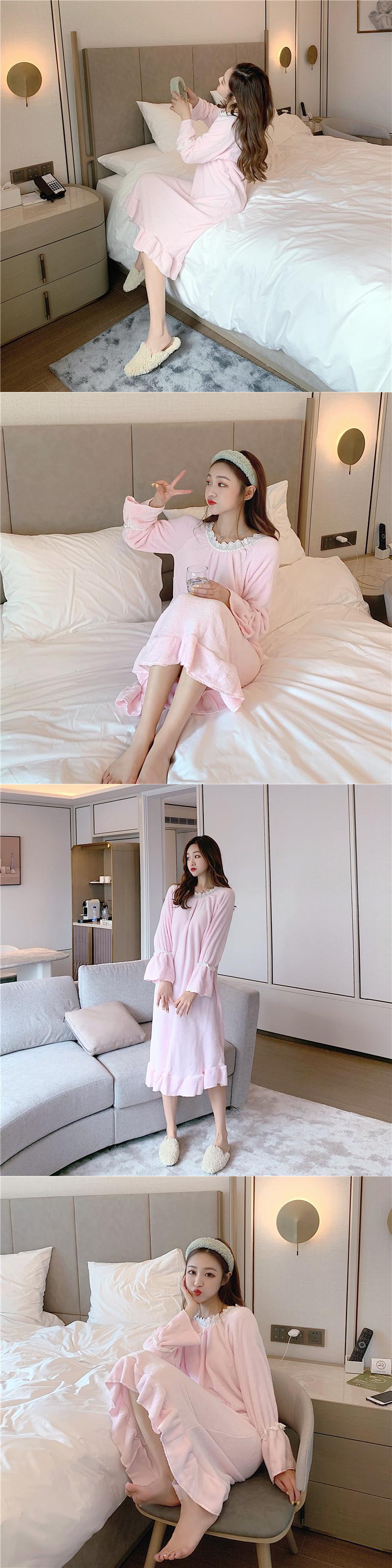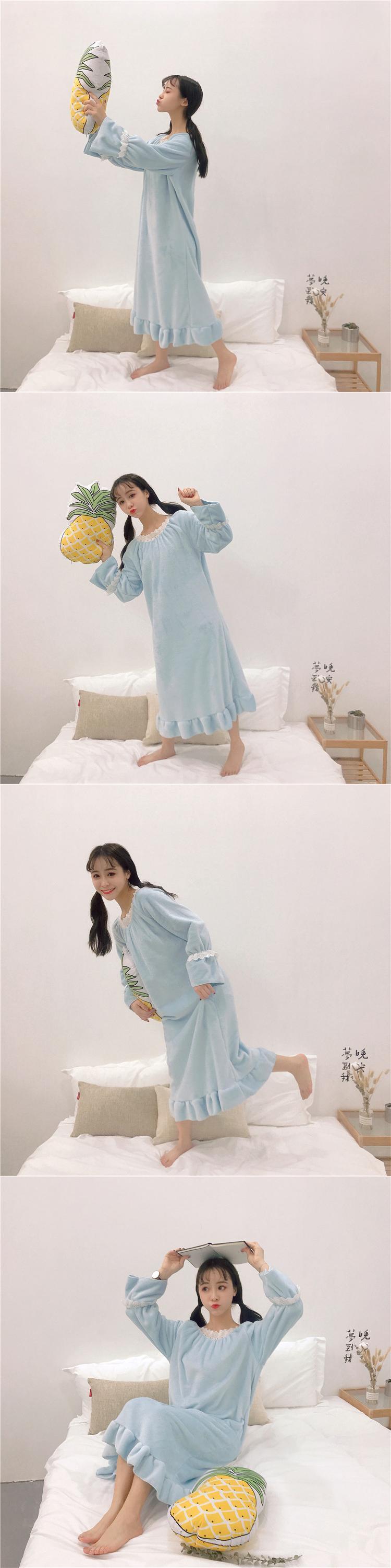春かわいいぬいぐるみぬいぐるみ厚フリル長袖パジャマドレス学生ネグリジェホームサービスレディース YY-ファッション63096799266