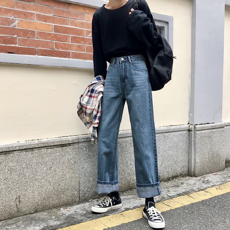 ルーズワイドレッグジーンズレディース2020新入生ハイウエストスリミングパンツユーズド加工モップパンツハーレムパンツ YY-ファッション53127269596