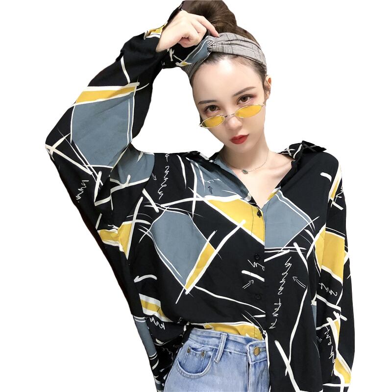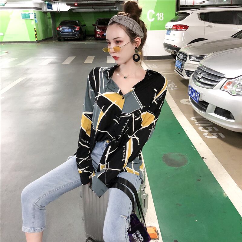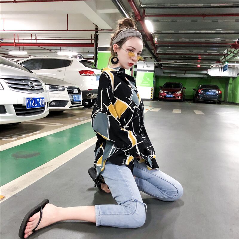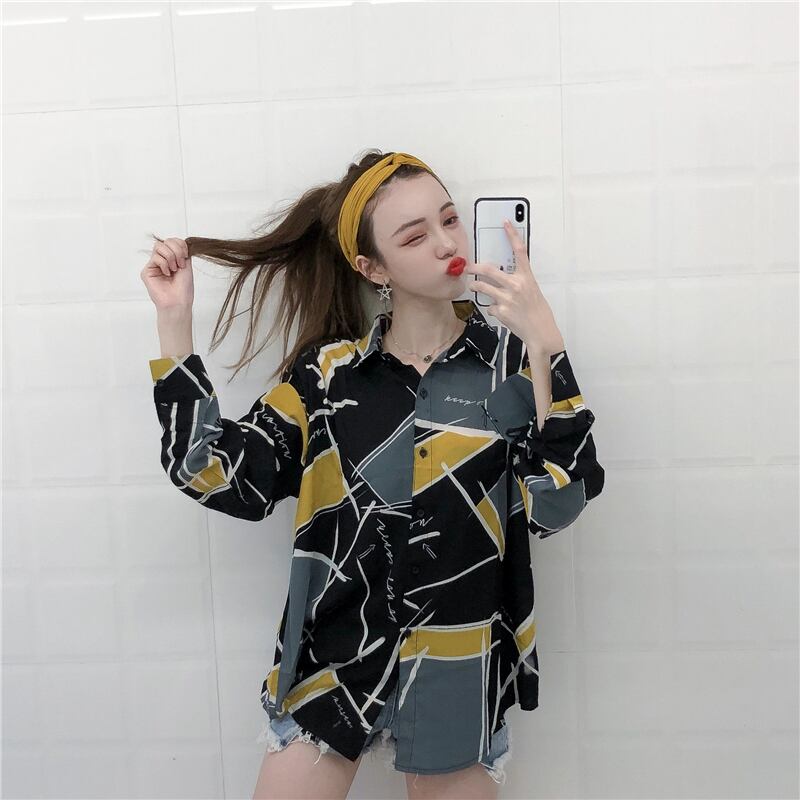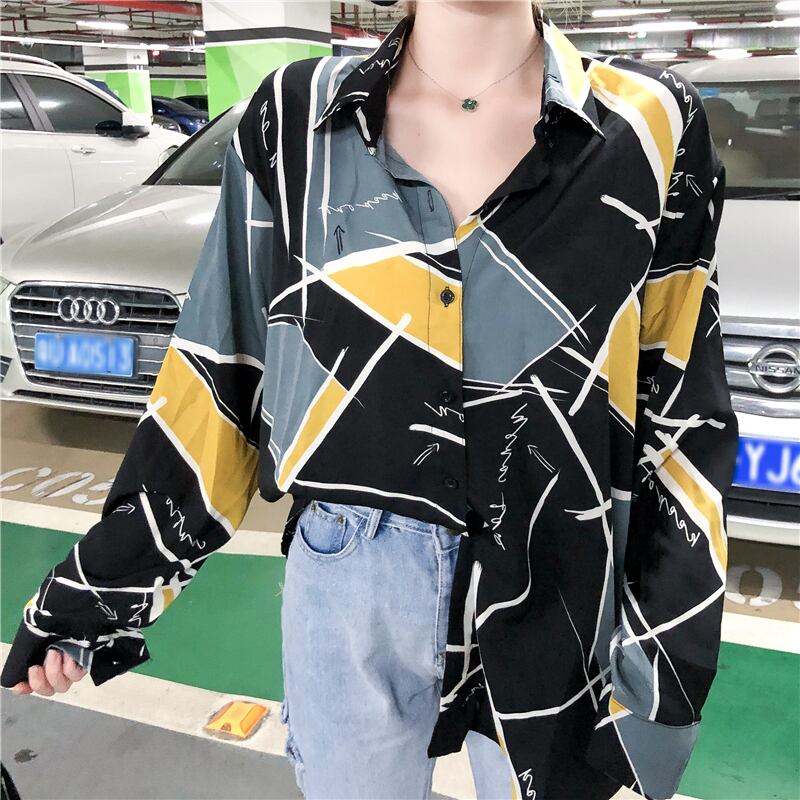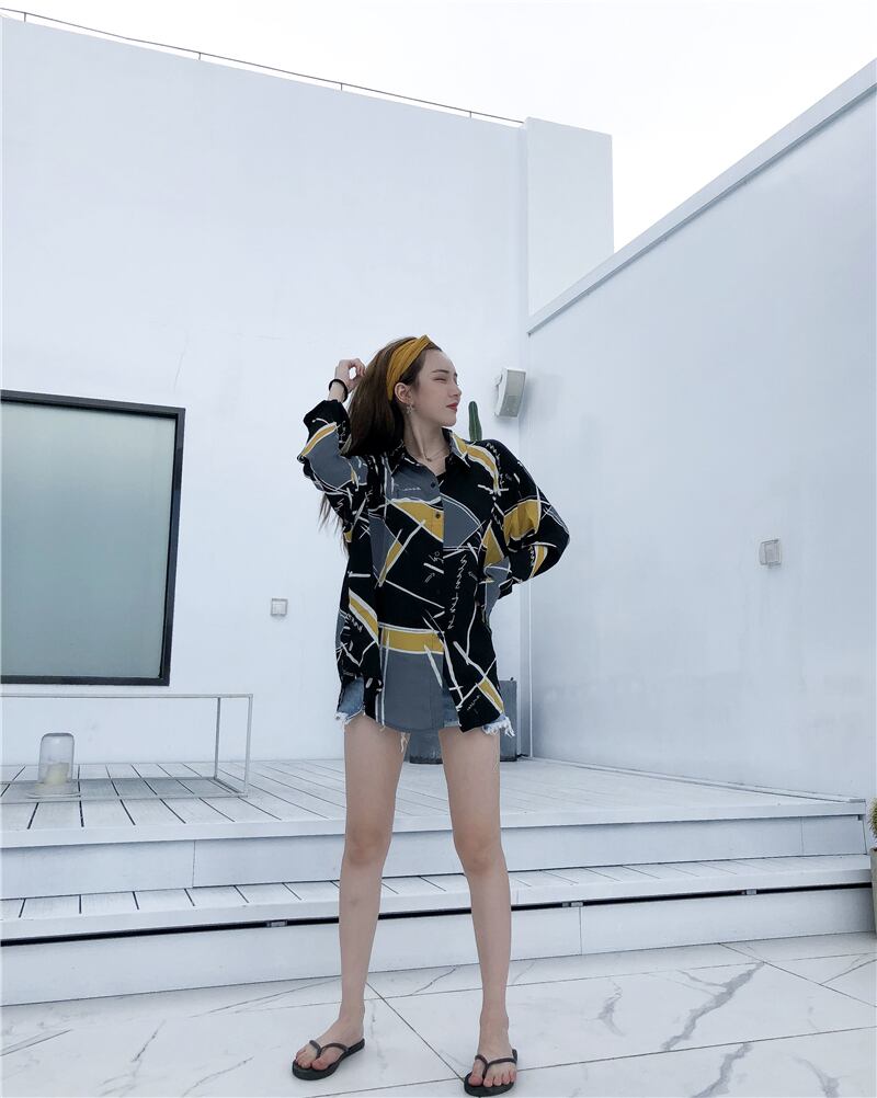 スタイルスタンダードプリントルーズシャツ トップス レディース ロング レトロ YY-ファッション74909142513