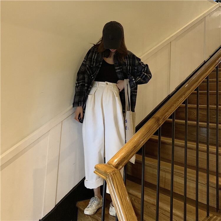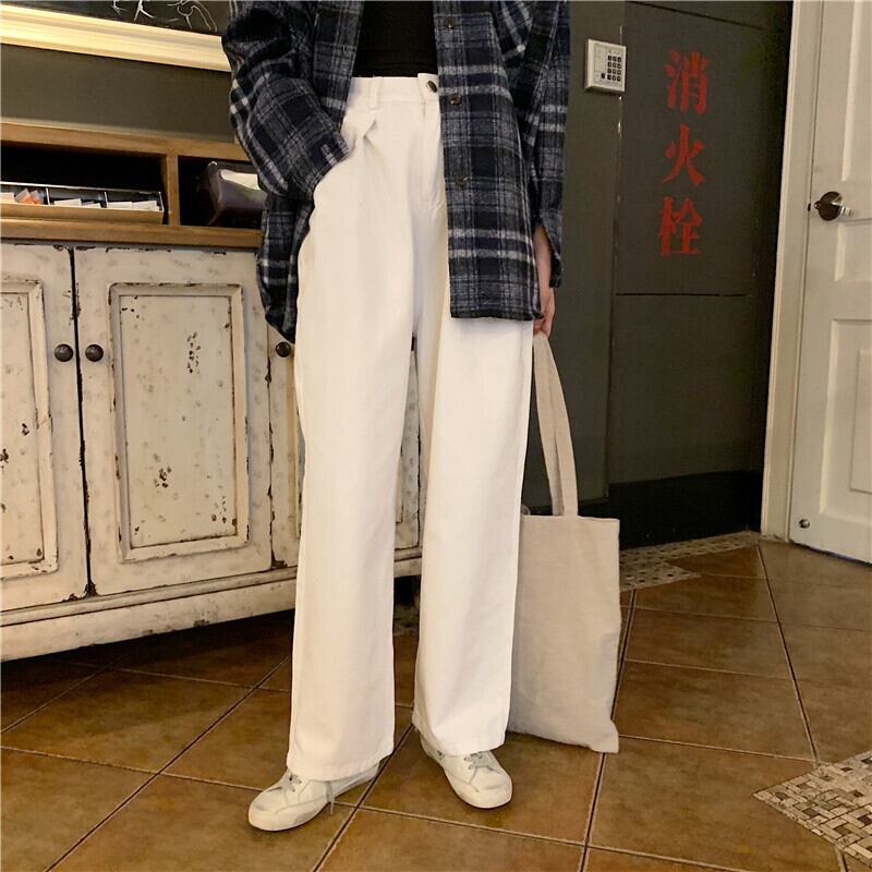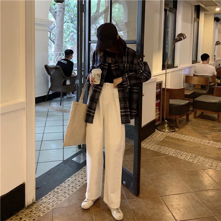 2020年夏のレディースバージョンの新しいルーズで薄いファッションワイルドホワイトストレートレッグパンツワイドレッグパンツパンツトレンド YY-ファッション38786207752
