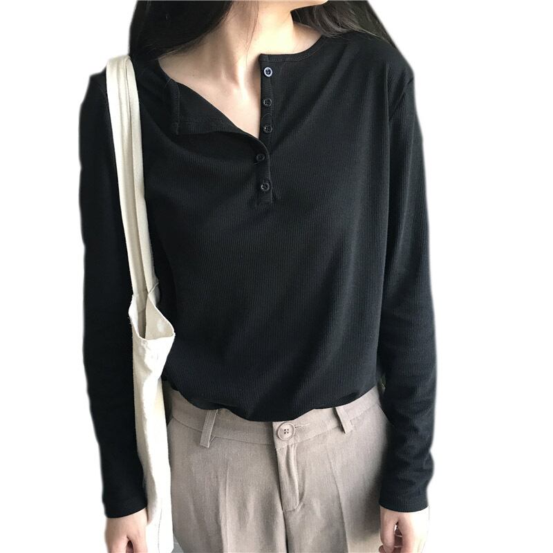2020年夏の学生新作ボトミングシャツトップルーズで細い糸無地長袖Tシャツレディーストレンド YY-ファッション98251354280