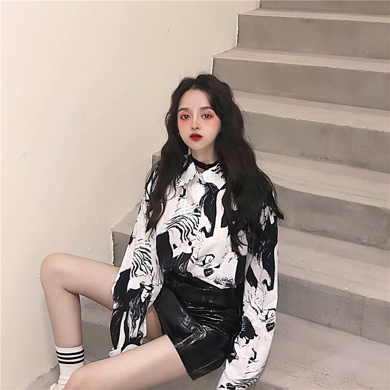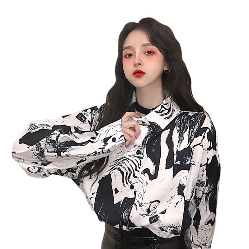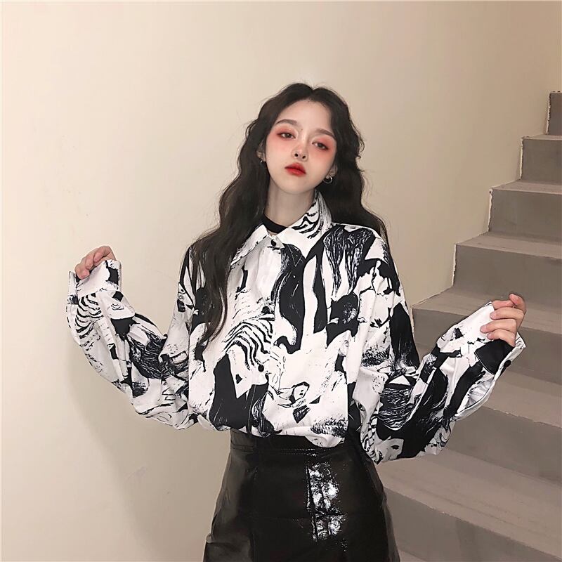 2020スモールフレッシュトップレディースバージョンルーズ長袖レトロシックインクフラワーシャツシャツ学生トレンド YY-ファッション29553220866