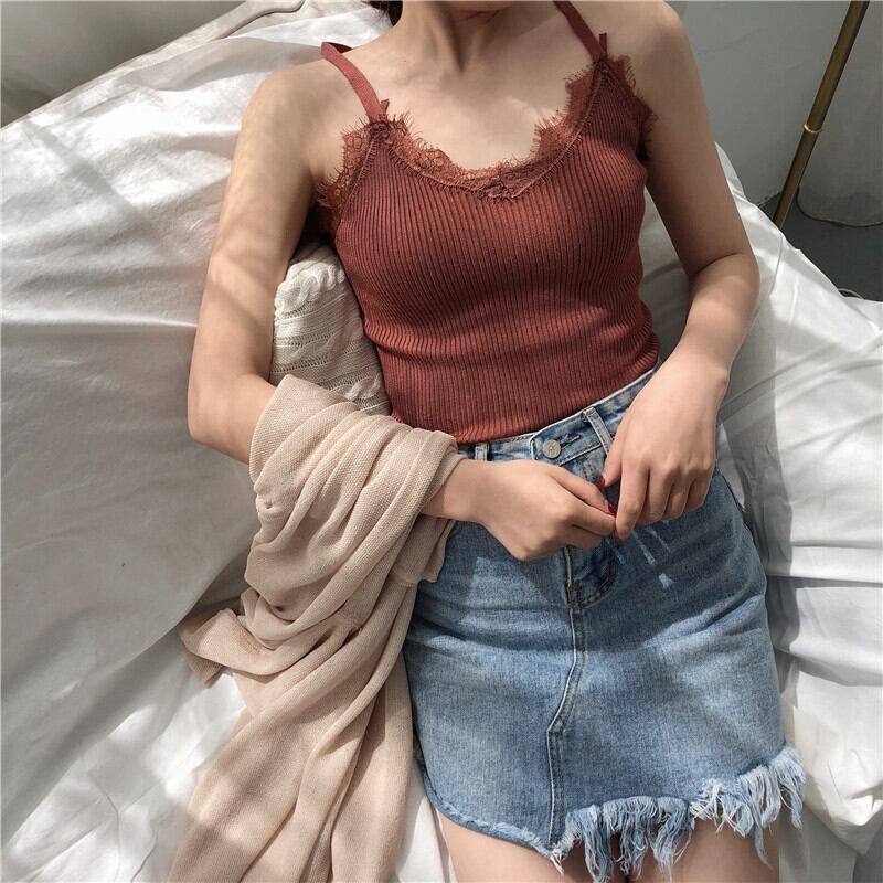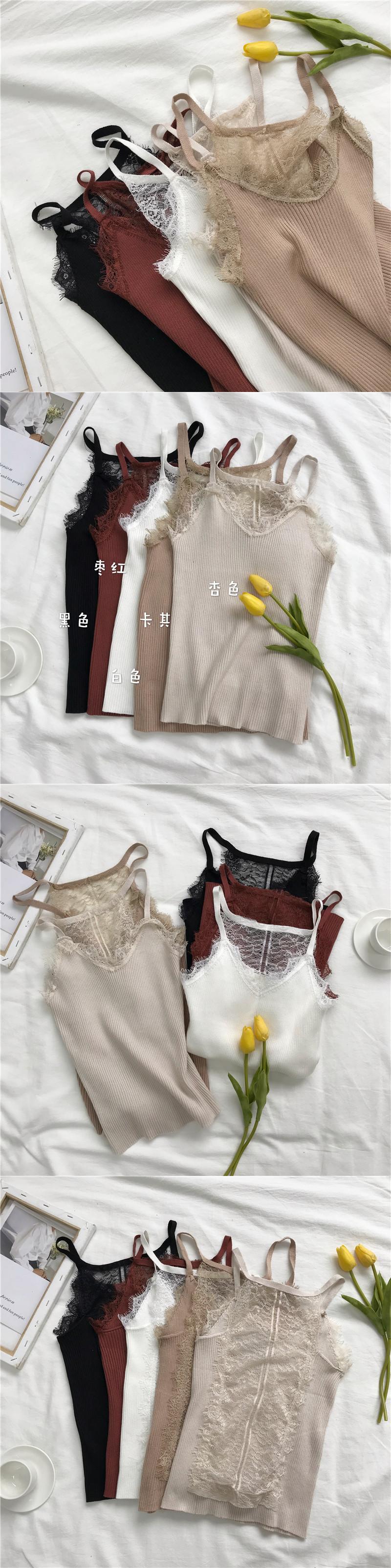 香港スタイルのレトロなキャミソールの女性のアウターウェアの編み物とレースのVネックは、ボトミングシャツの短い夏のトレンドで薄くなっています YY-ファッション96415937409