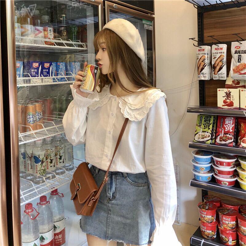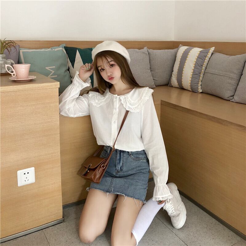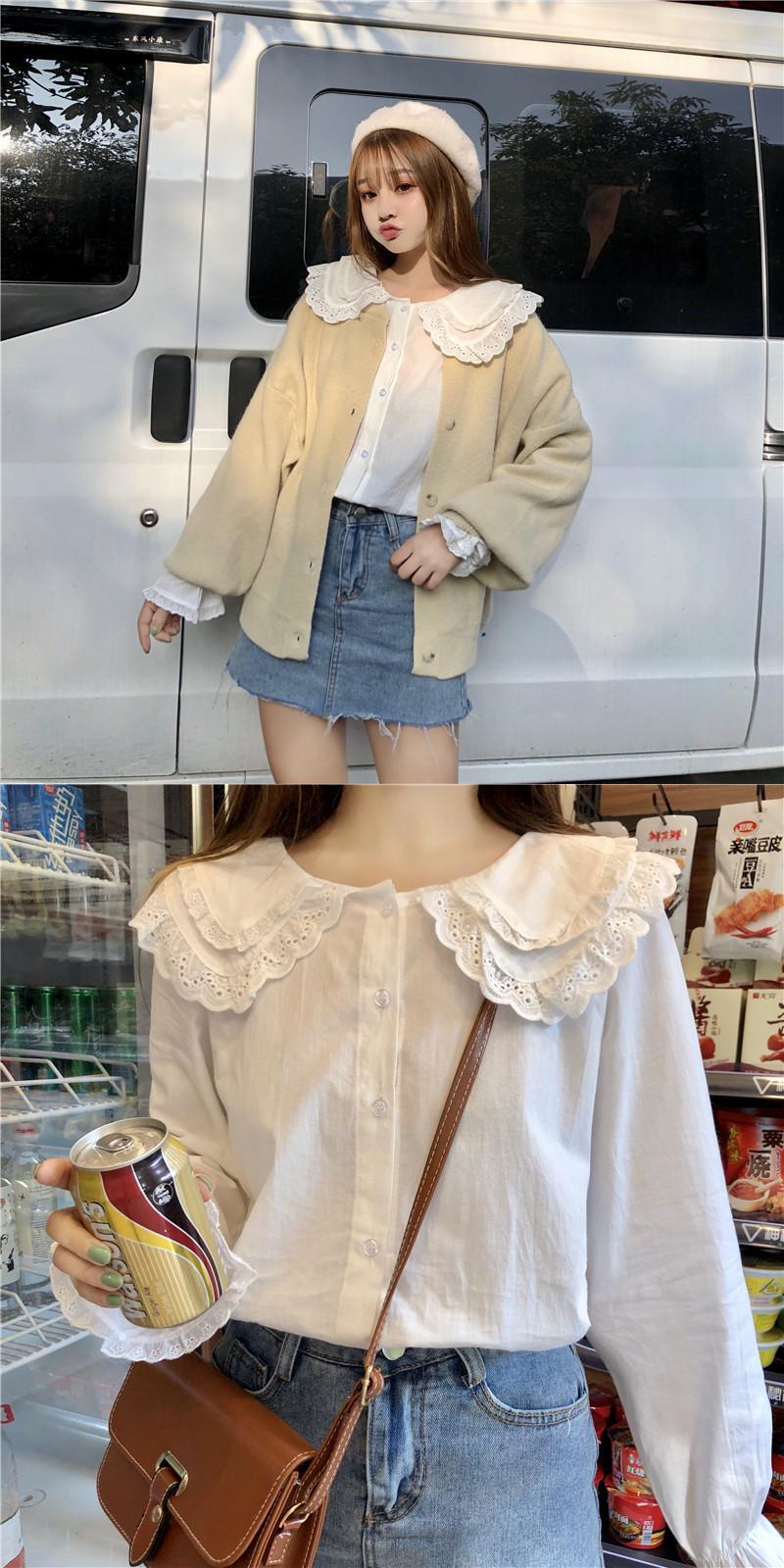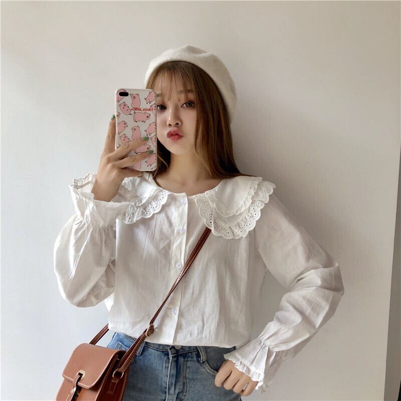シャツの女性2020年夏の新しいオールマッチ小さな新鮮な中空レース二重層大きな人形の襟のシャツトップ YY-ファッション28819580250