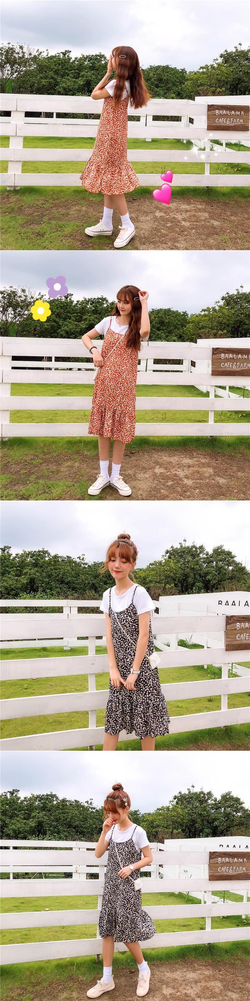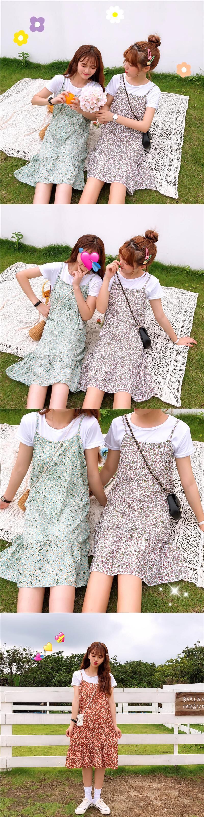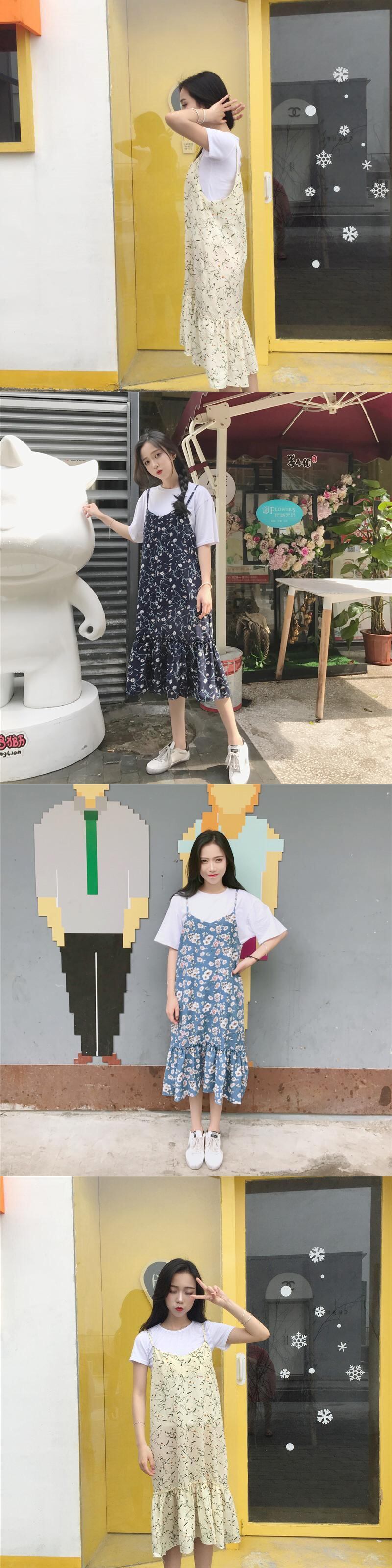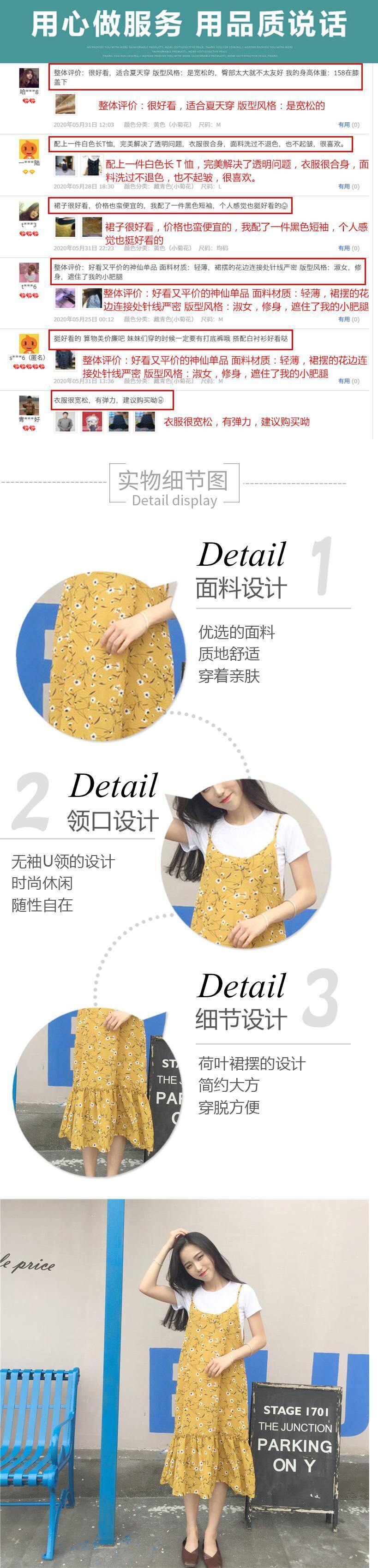 ネットレッドスリングドレス女性2020夏レトロスモールフローラルロータスリーフシフォンミドル丈Aラインロングスカート YY-ファッション12414604635