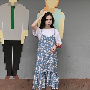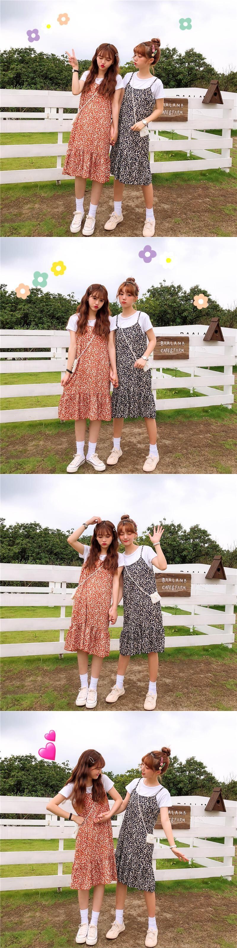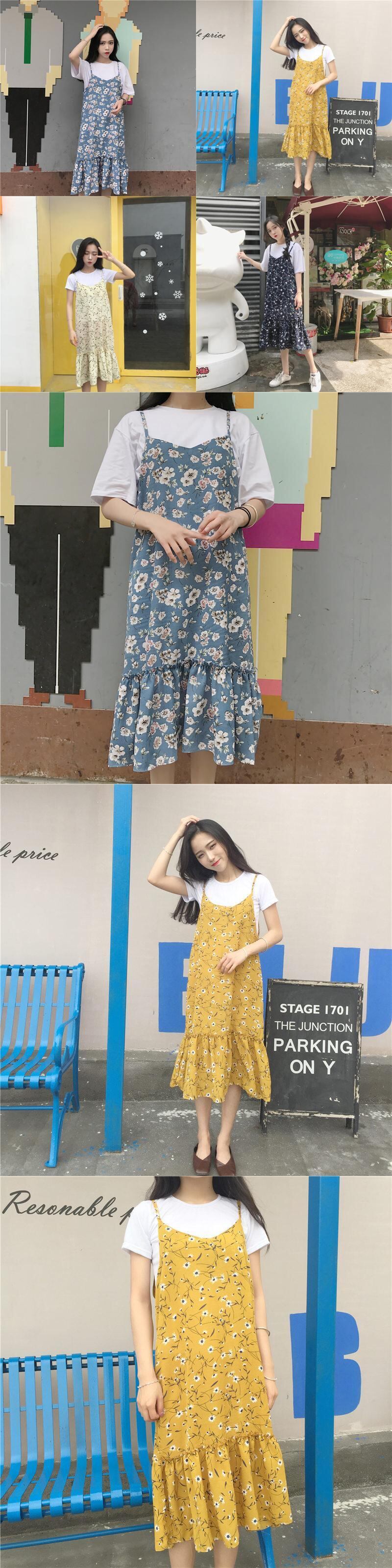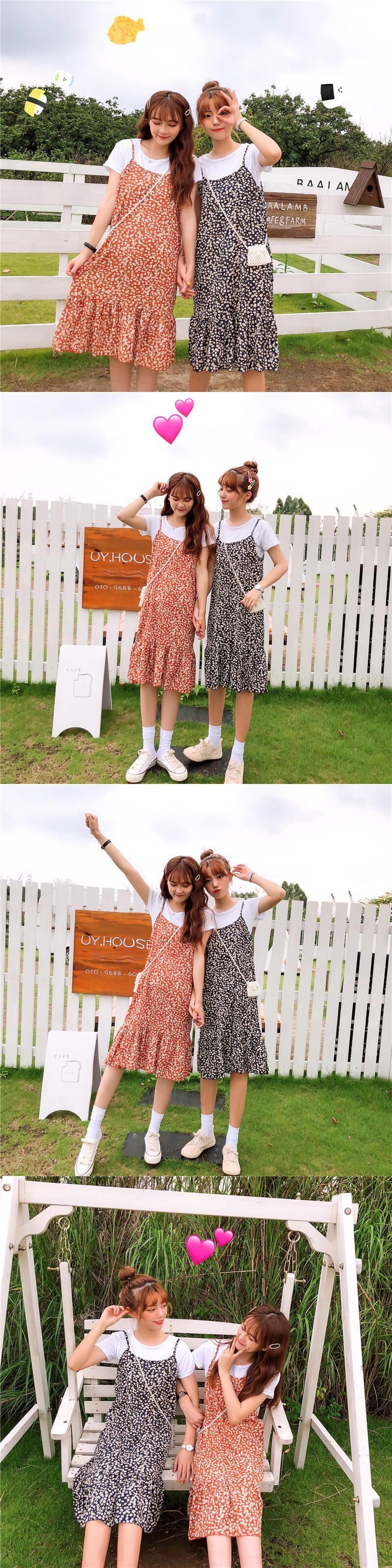 ネットレッドスリングドレス女性2020夏レトロスモールフローラルロータスリーフシフォンミドル丈Aラインロングスカート YY-ファッション12414604635