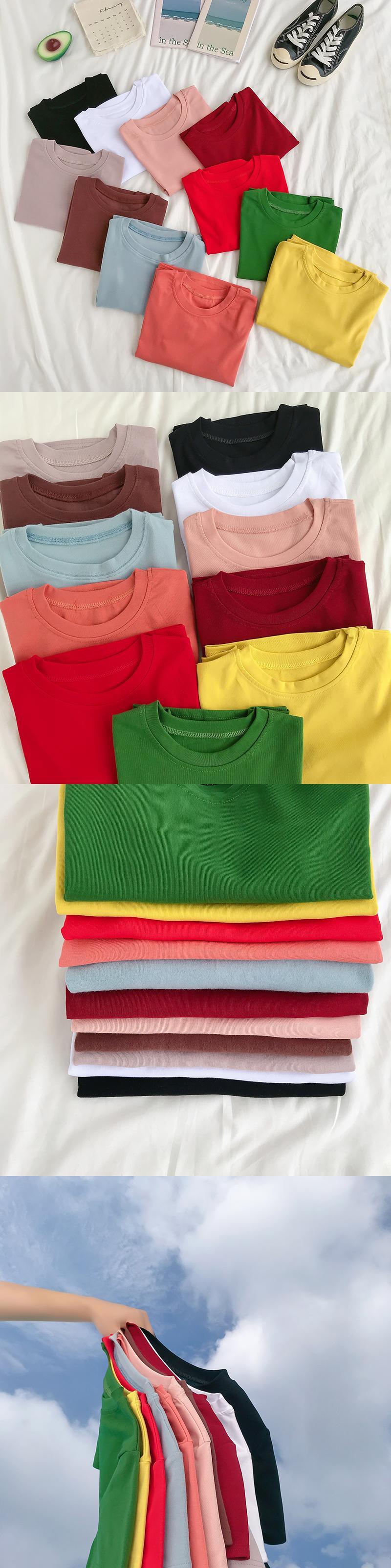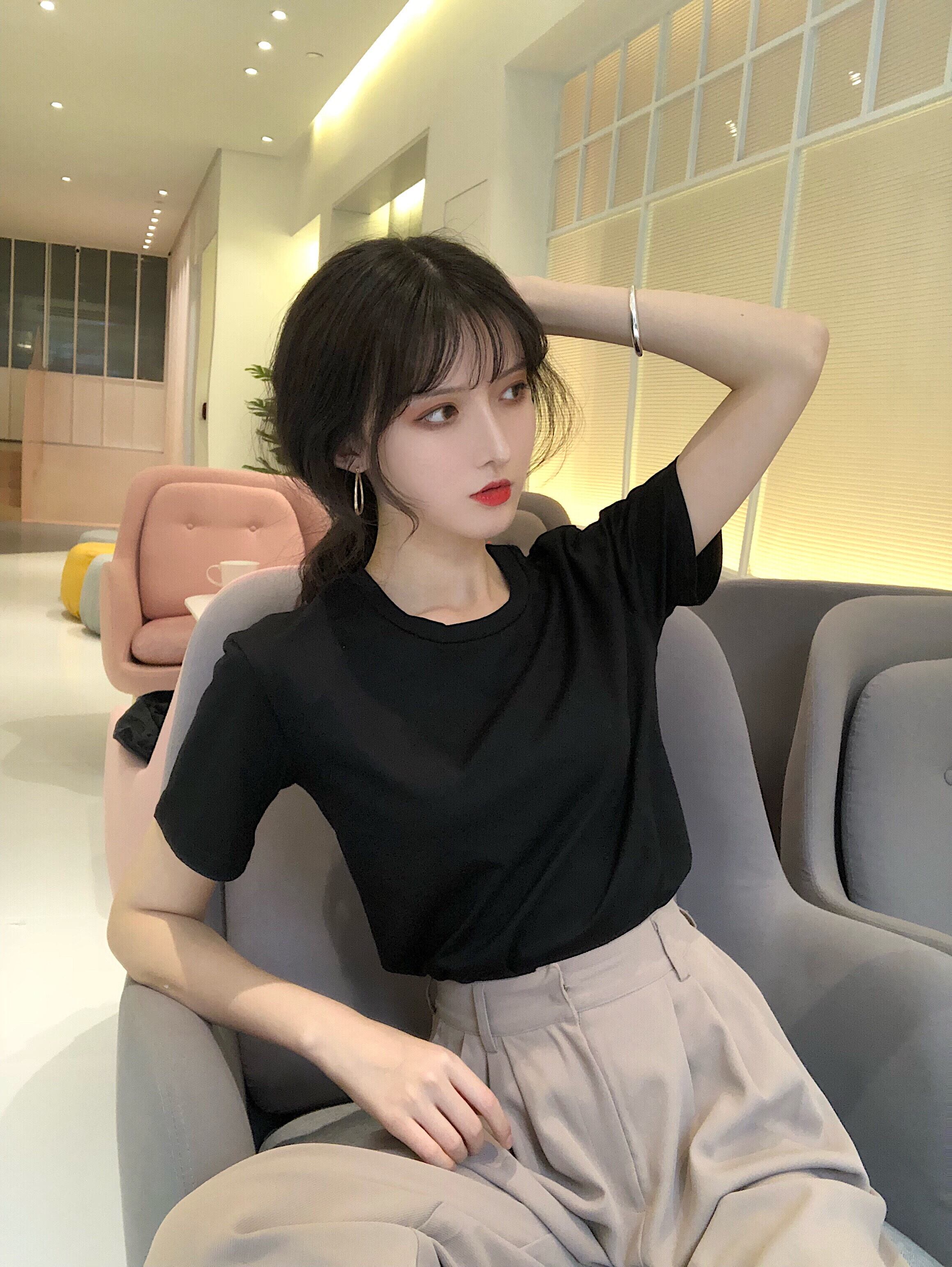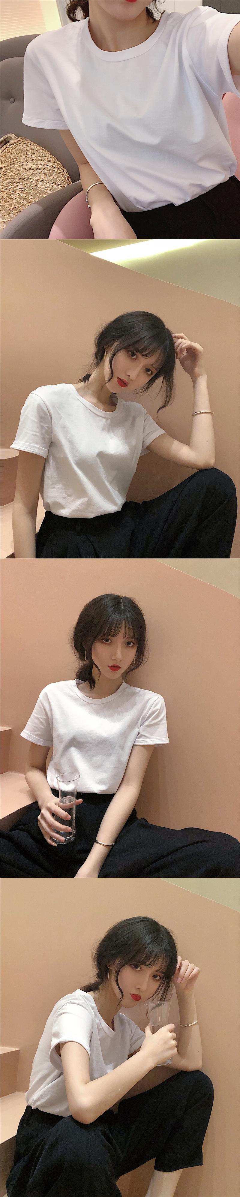2020年夏の新作カレッジスタイル無地ラウンドネック多目的ベーシック半袖Tシャツ学生女性ボトミングシャツトップス YY-ファッション53442352994