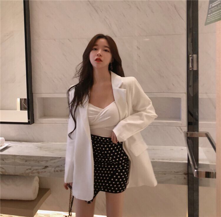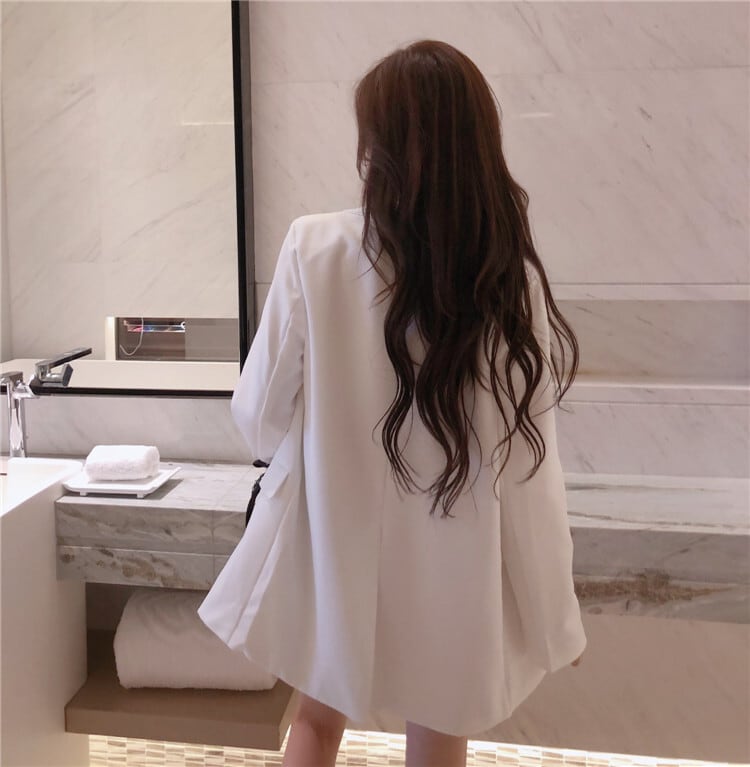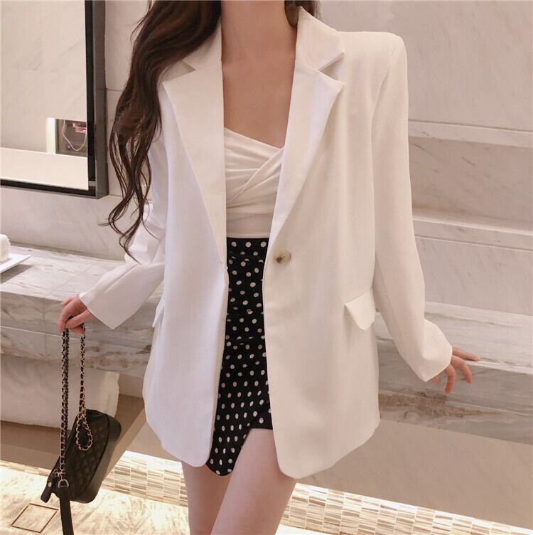 2020年夏の新しい香港スタイルのルーズショルダーパッドスーツジャケットミドル丈長袖白いスーツジャケット女性 YY-ファッション9916141038