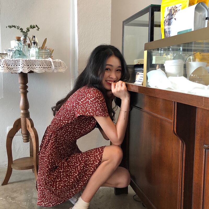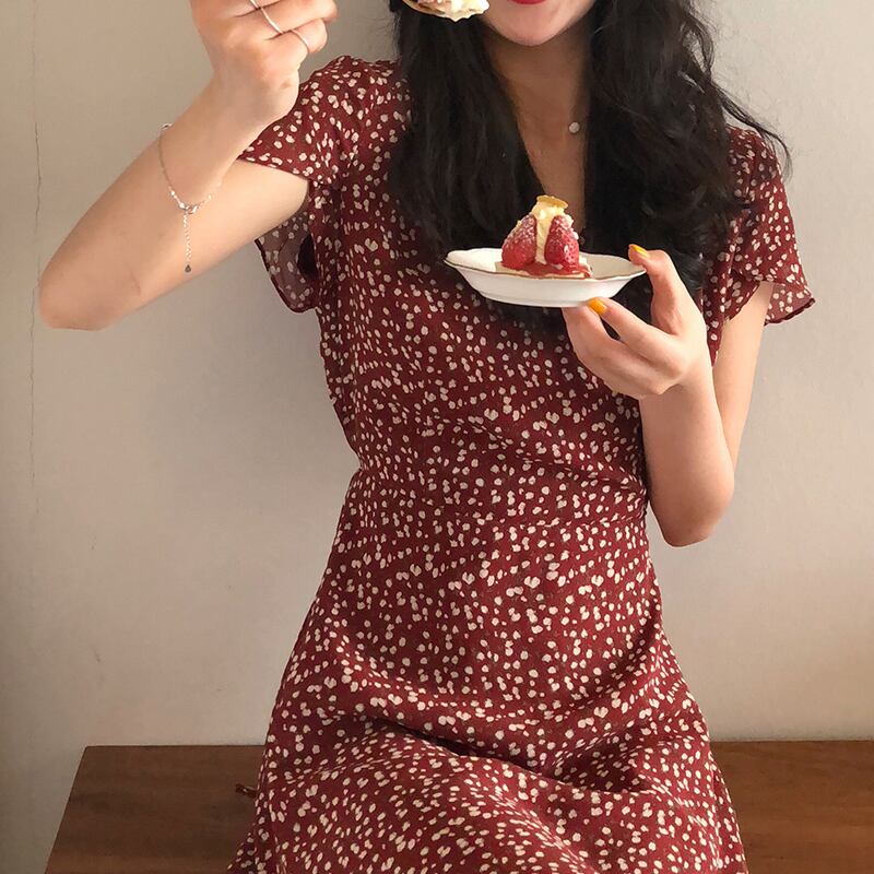 2020年ファッション新春夏着気質原宿風Vネックシフォンシックレッドロングスカート女性フローラルドレス YY-ファッション91291261081