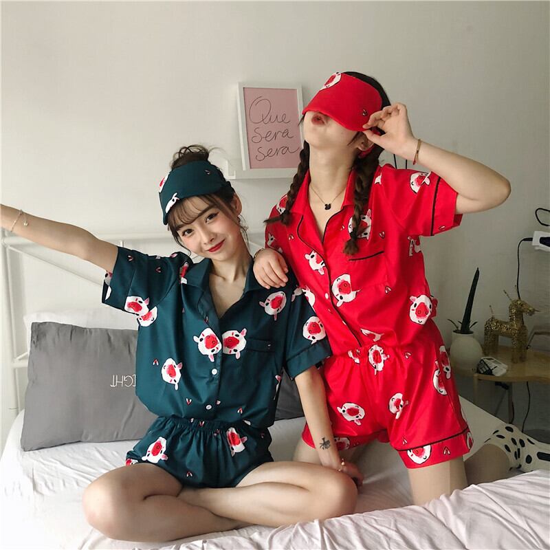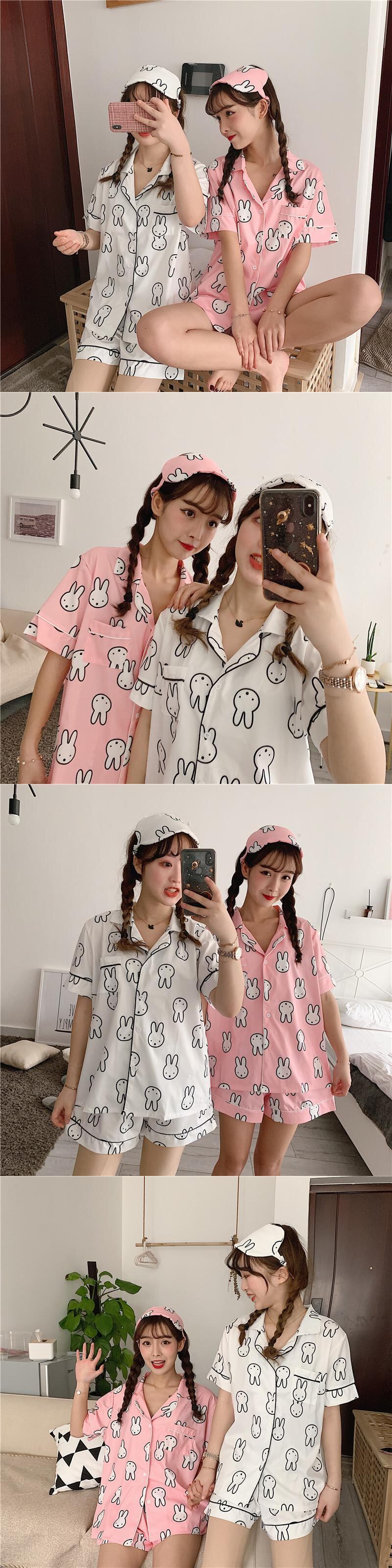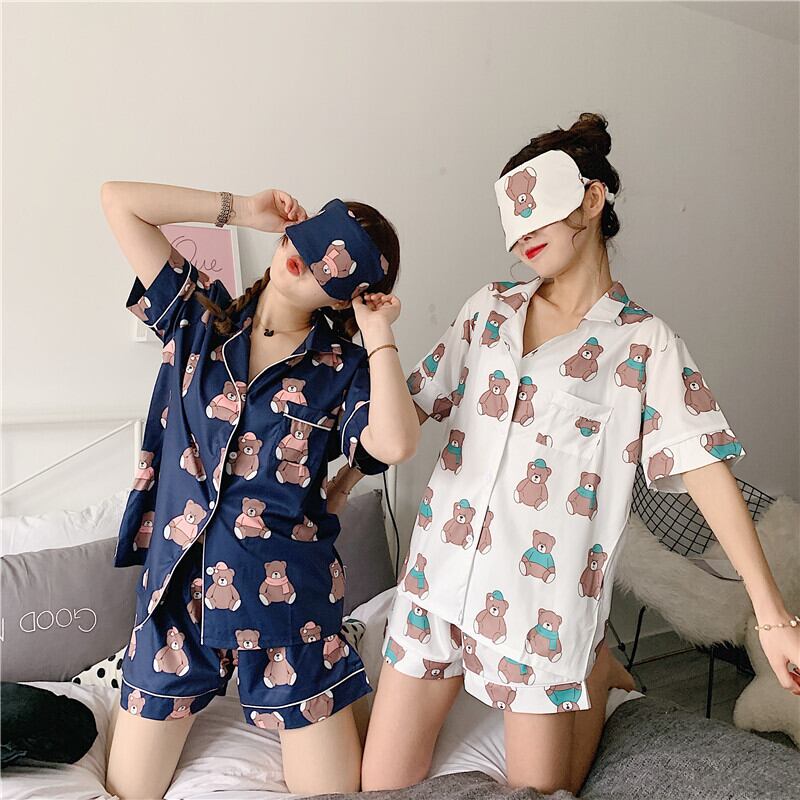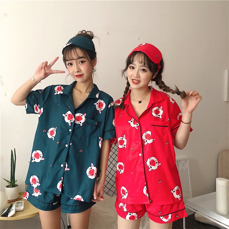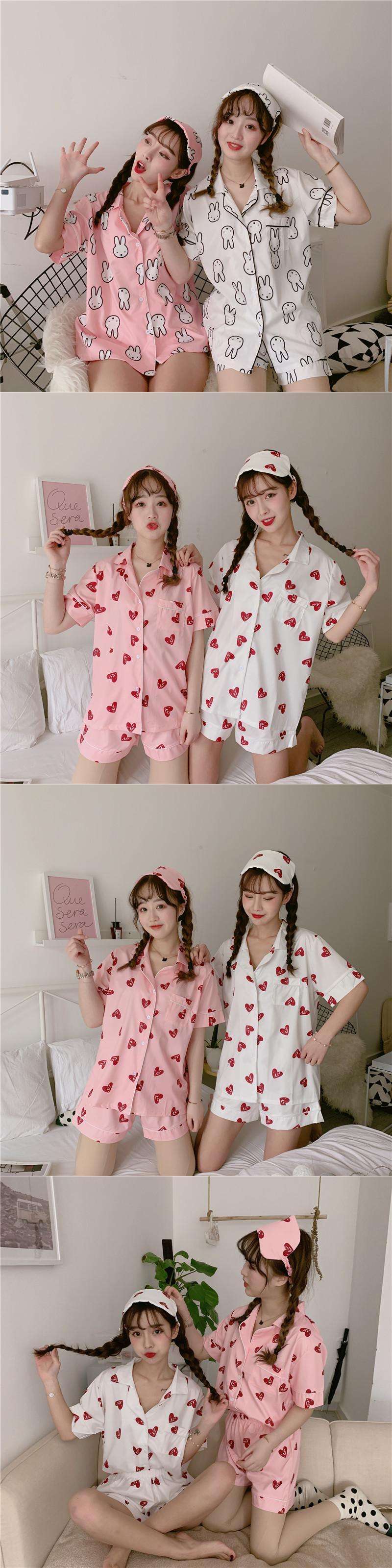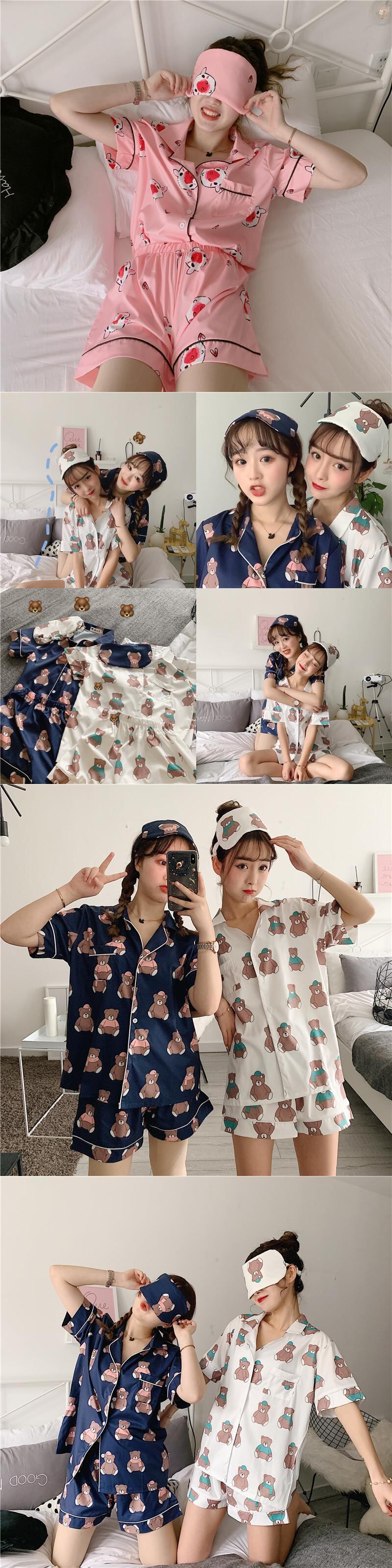 2020年夏の漫画プリントパジャマ女性半袖ショーツ学生ホームサービスツーピース女性用ゴーグル YY-ファッション20335055282