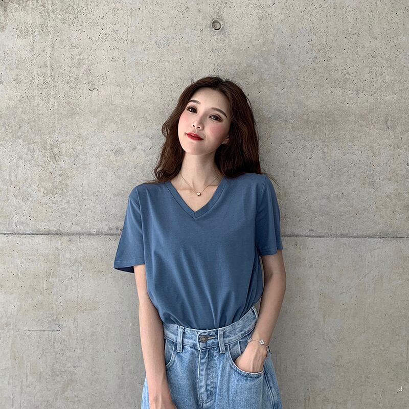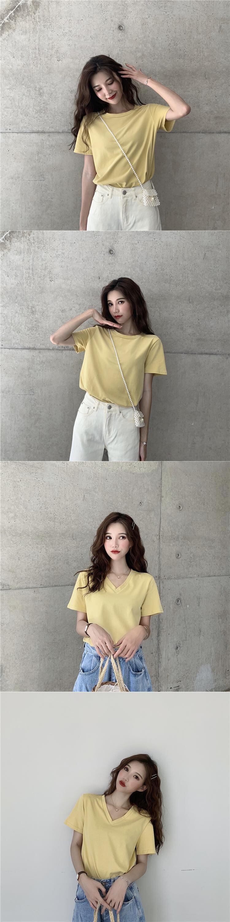 スタイルマルチカラールーズ薄手ラウンドネックVネックTシャツ Oネック YY-ファッション73601795656