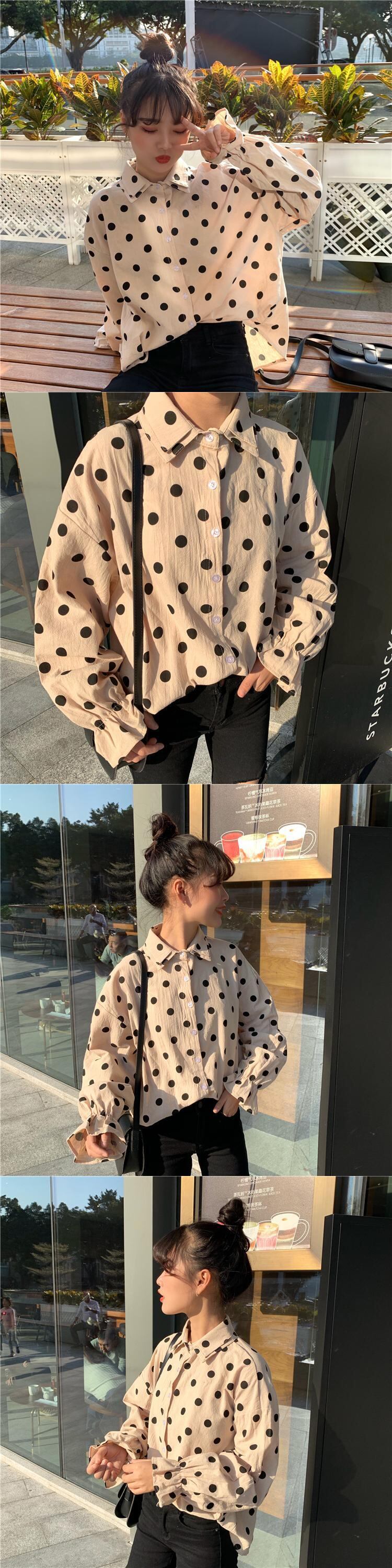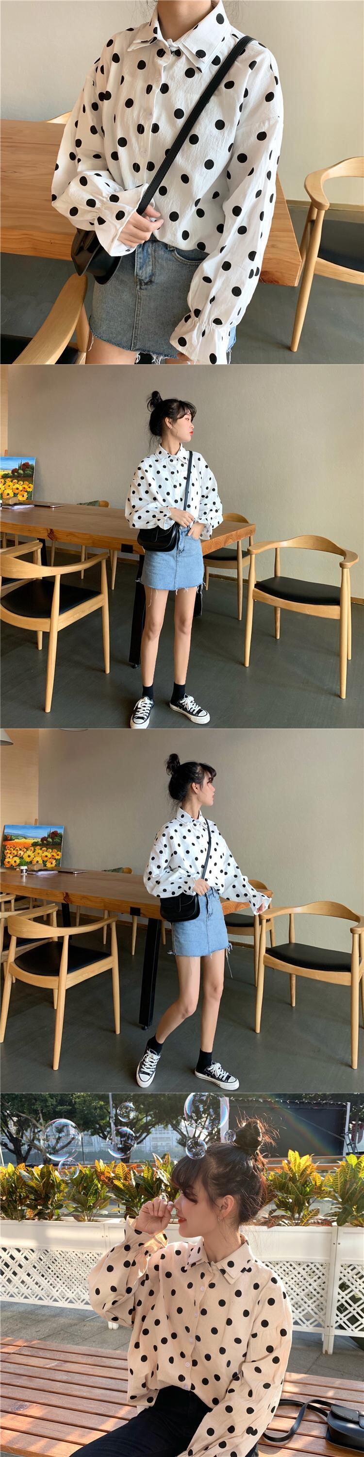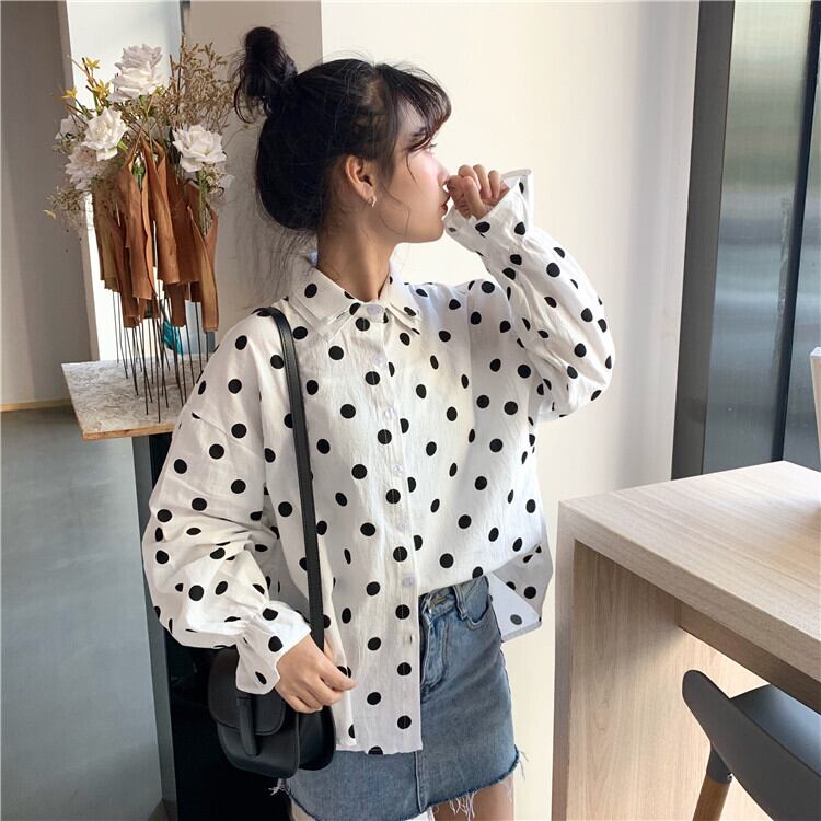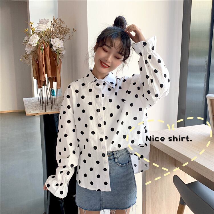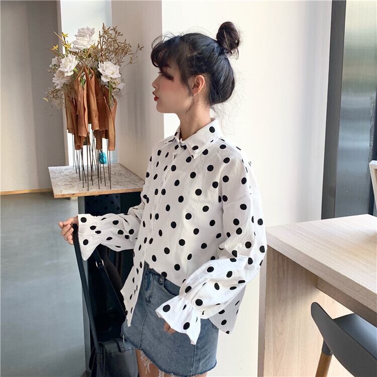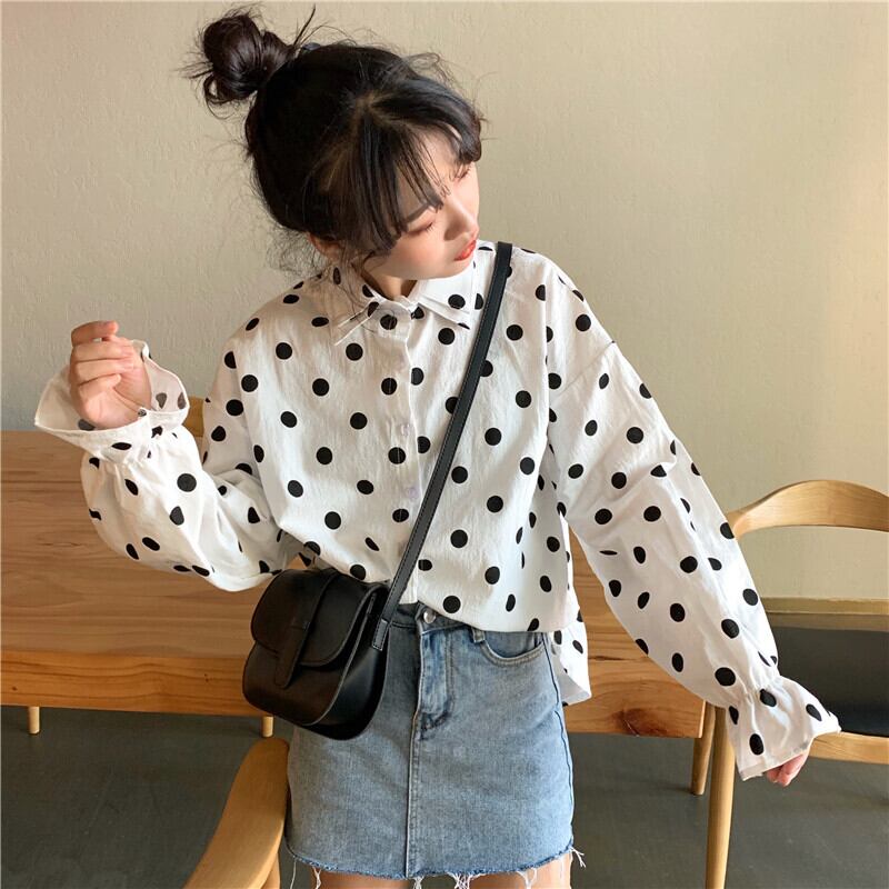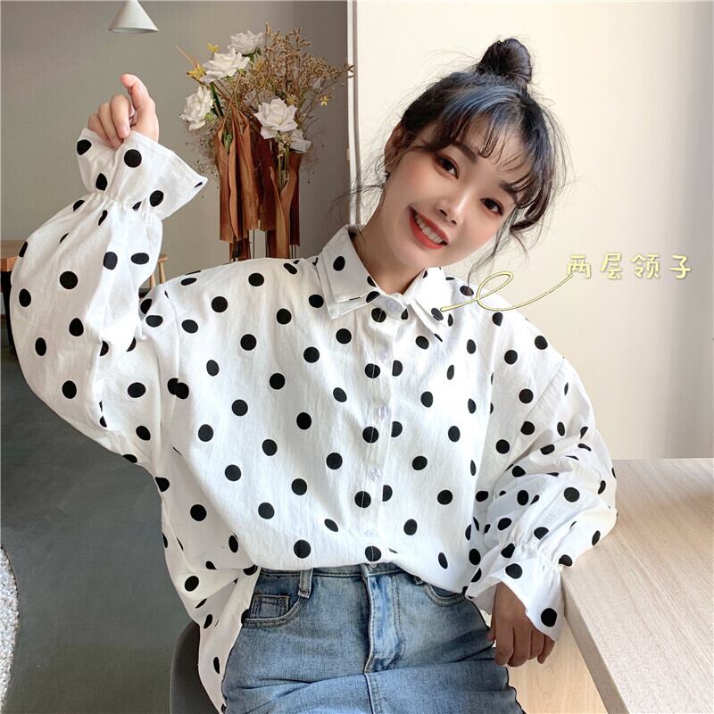 ホワイトシャツ2020年夏シックなダブルカラーの水玉ルーズシャツ学生スリミングボトミングトップの女性版 YY-ファッション41715092452