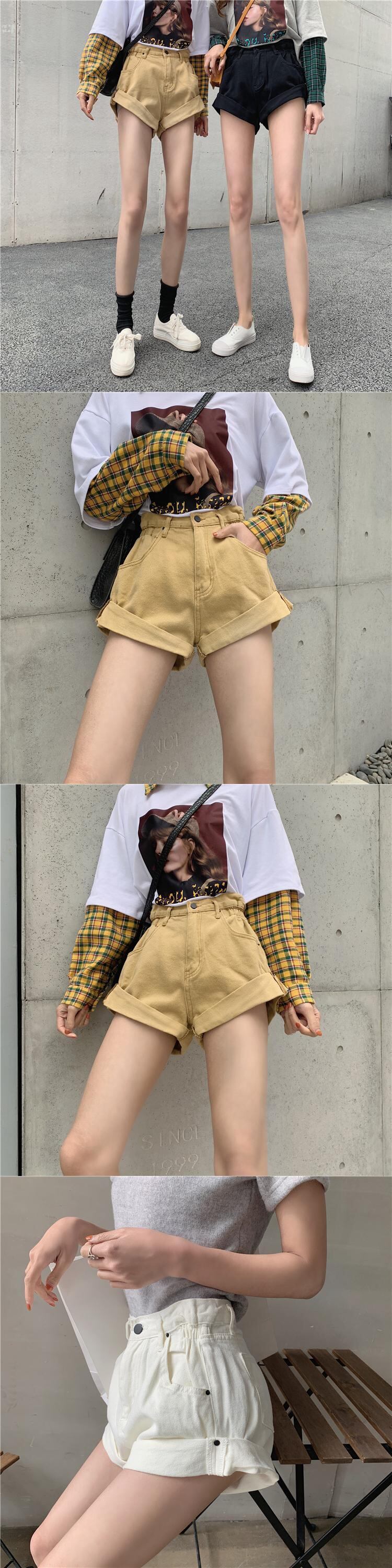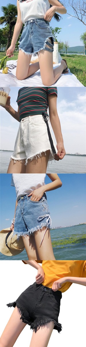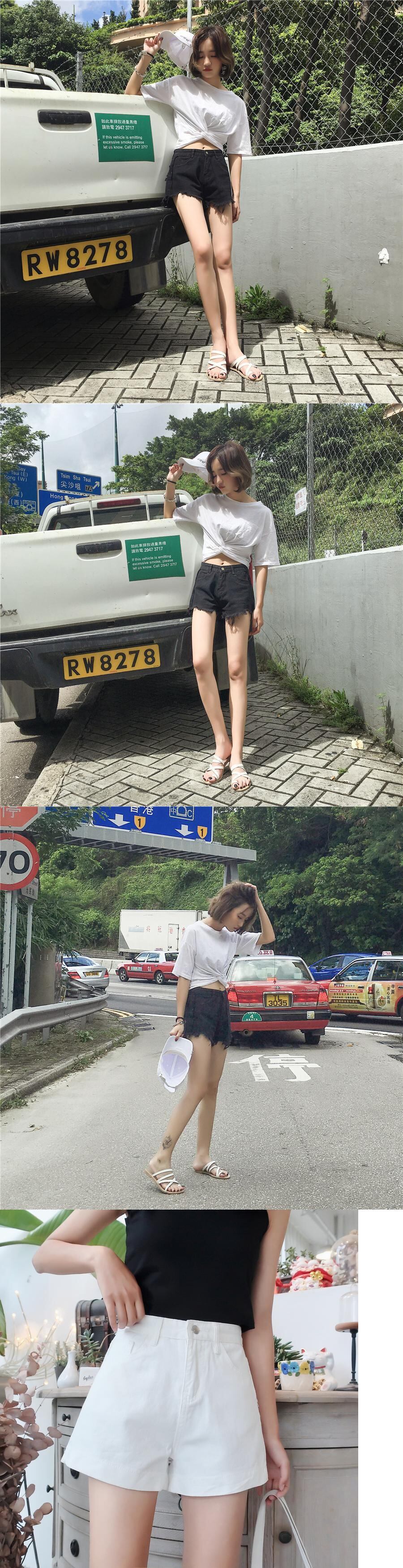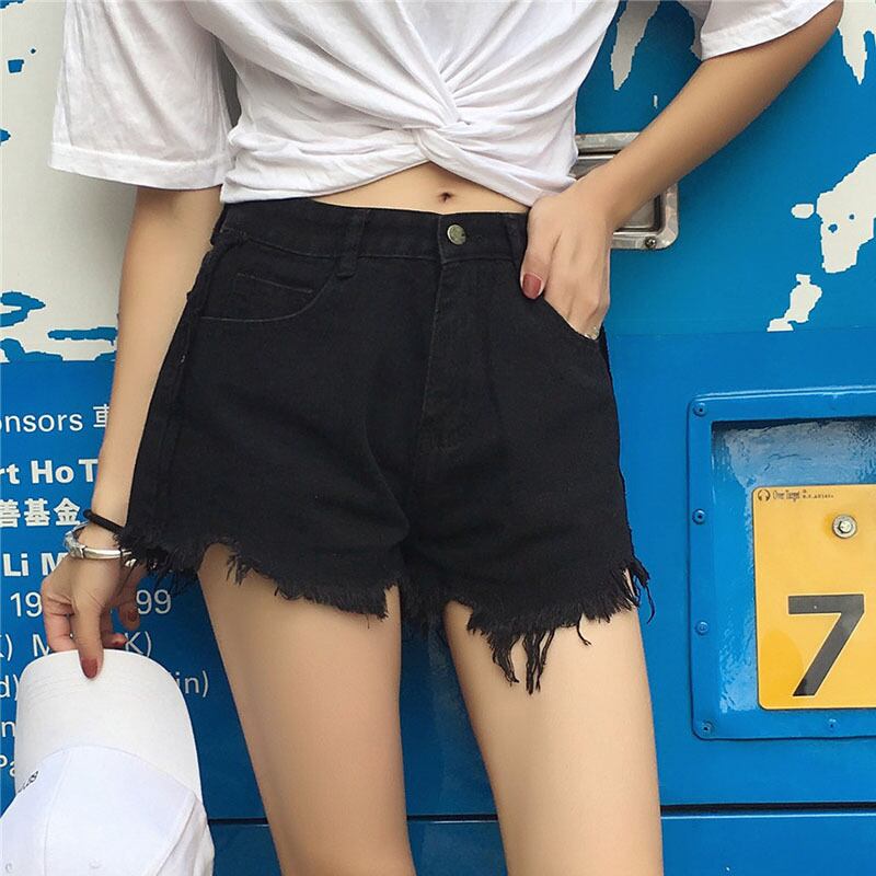 ブラックデニムショーツレディース2020年夏新バージョンハイウエストルーズ&シンネットレッドローエッジワイドレッグパンツトレンド YY-ファッション30015441164