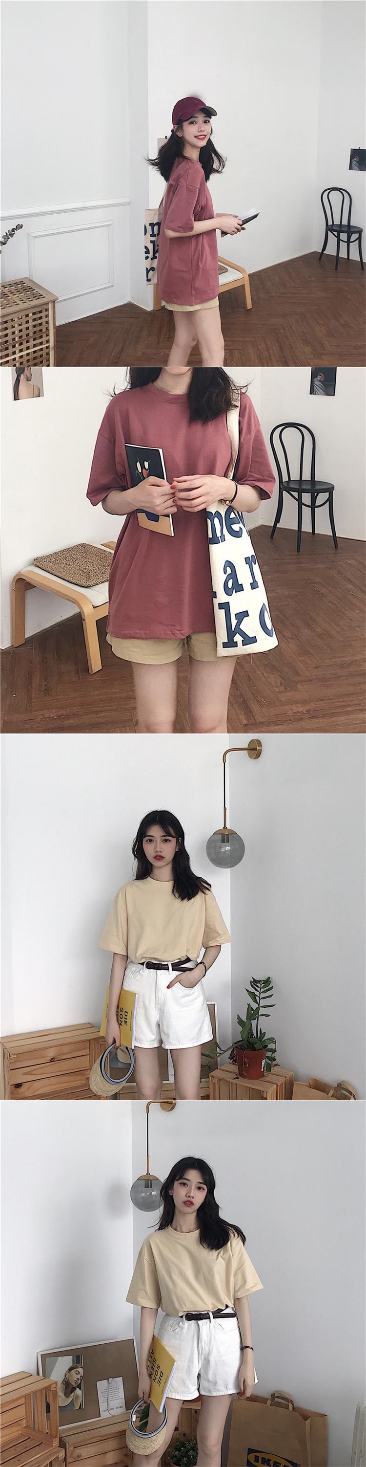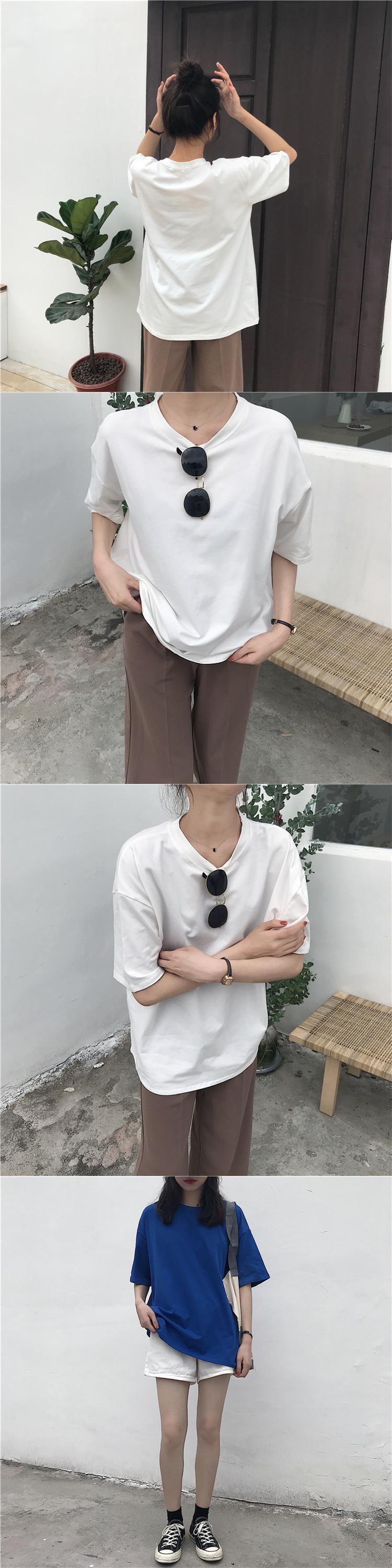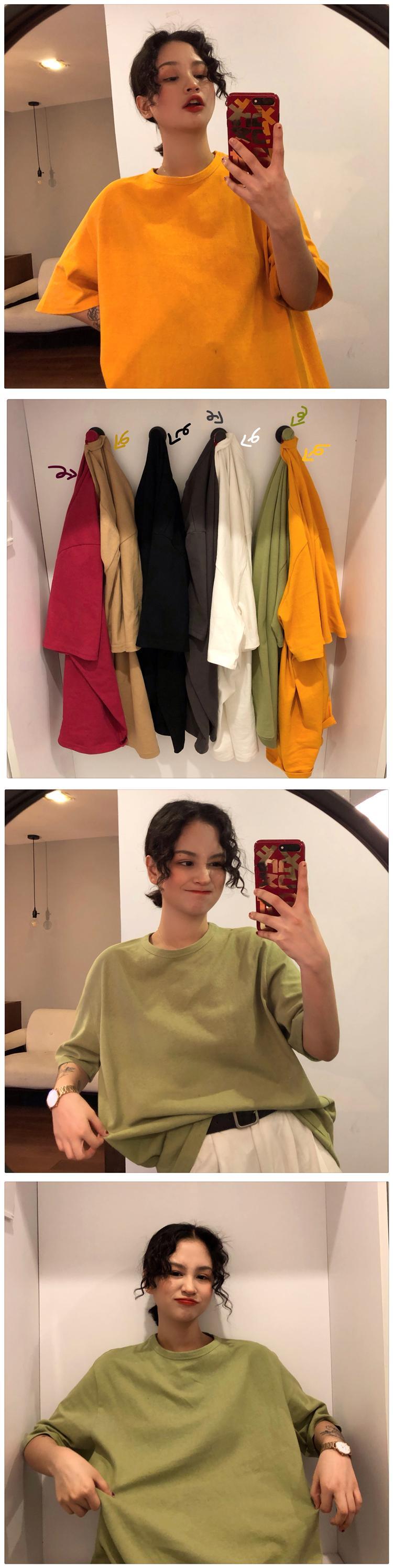 2020年夏新商品バージョンルーズ無地シンプルトップスオールマッチスリミングミドル丈半袖Tシャツ学生 YY-ファッション54033088310