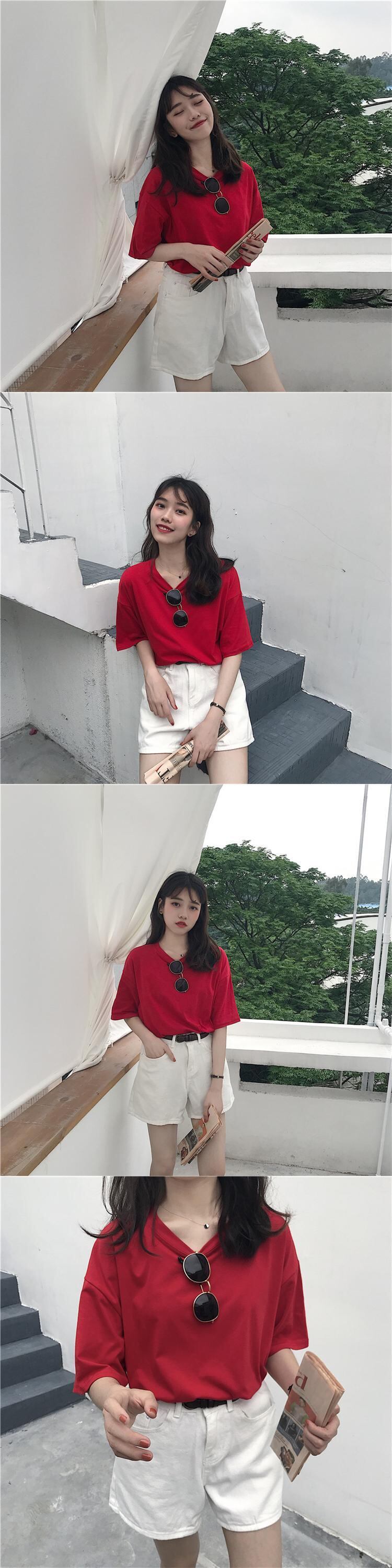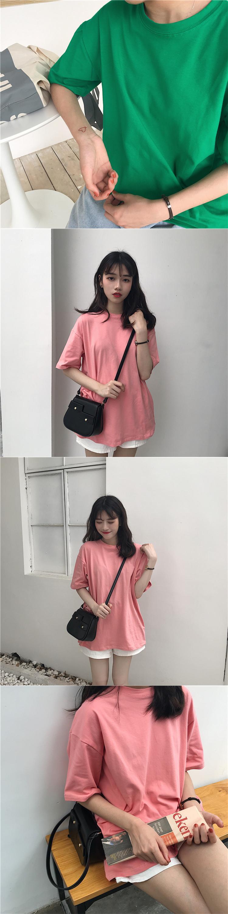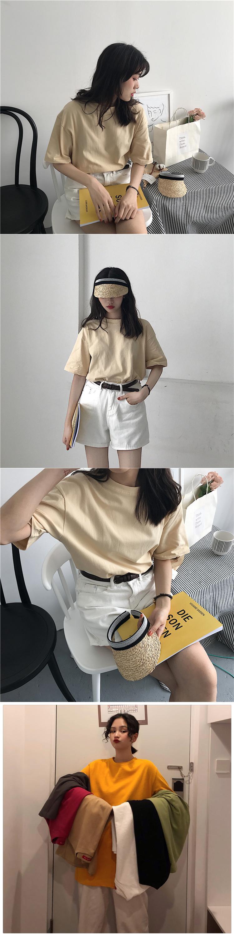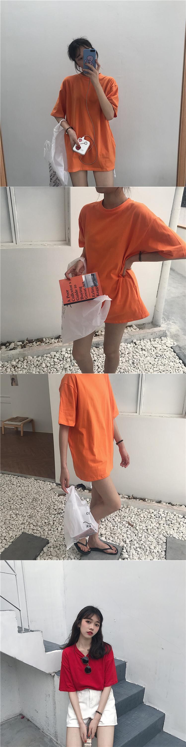 2020年夏新商品バージョンルーズ無地シンプルトップスオールマッチスリミングミドル丈半袖Tシャツ学生 YY-ファッション54033088310