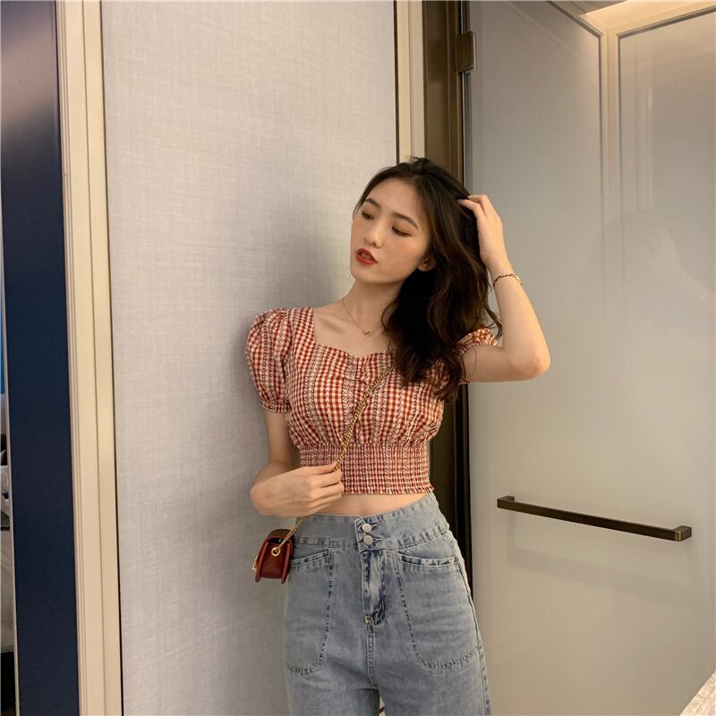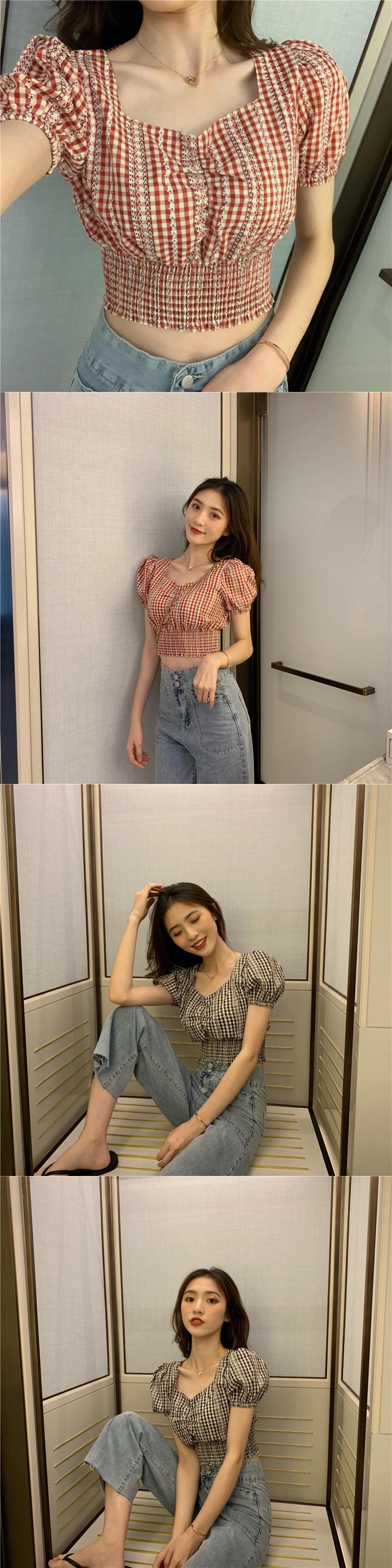 2020年夏のワイルドレトロ気質スクエアカラーチェック柄パフスリーブショートシャツファッションレディーストレンドの新バージョン YY-ファッション22074177025