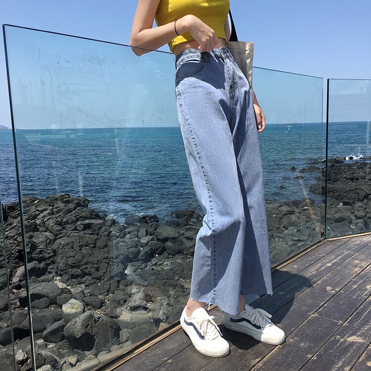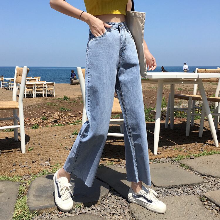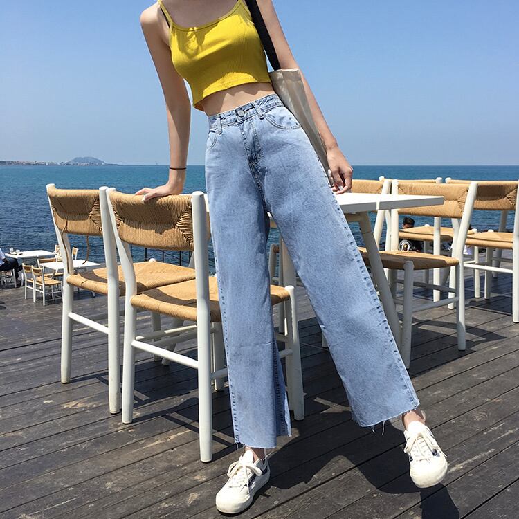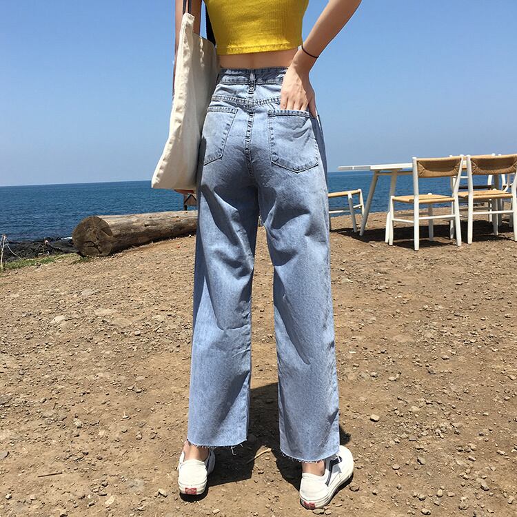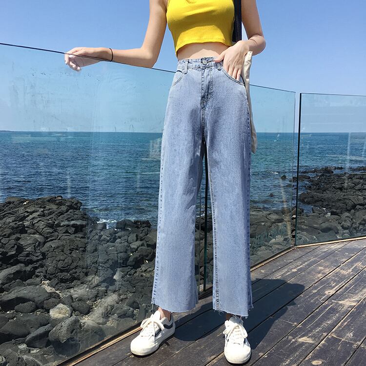 人気カジュアルファッションジーンズレディースサマーハイウエストルーズストレートレッグパンツスチューデントワイドレッグパンツライトカラーナインポイントパンツトレンド YY-ファッション14036037518