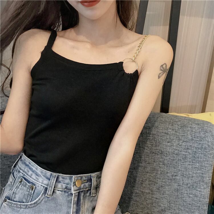 香港スタイルの気質夏レトロニットスモールスリングレディースアウターウェアバージョンのショートセクションスリムフィットオールマッチボトミングスモールベストタイド YY-ファッション94373431642