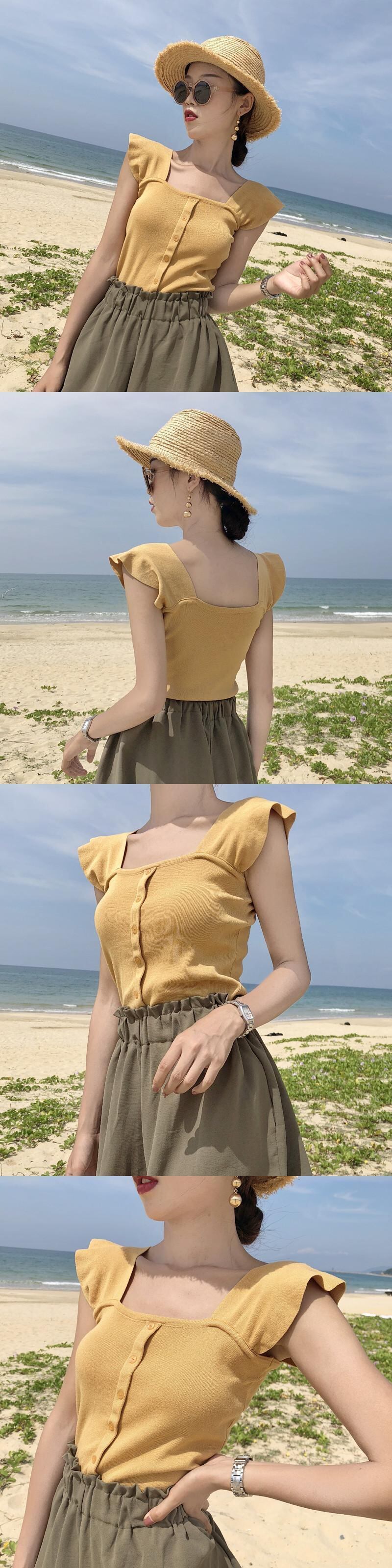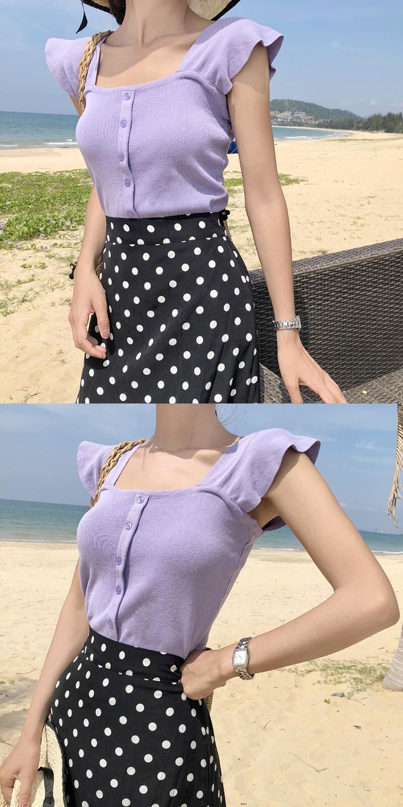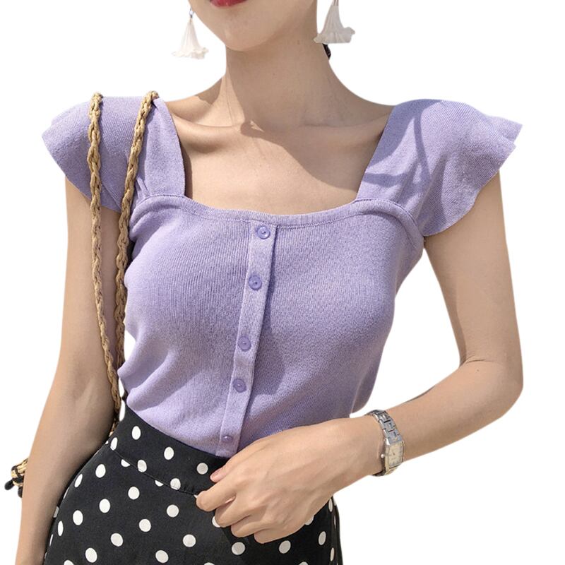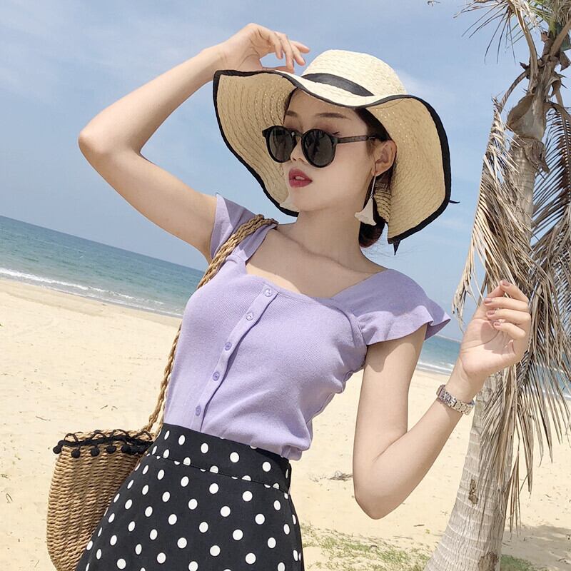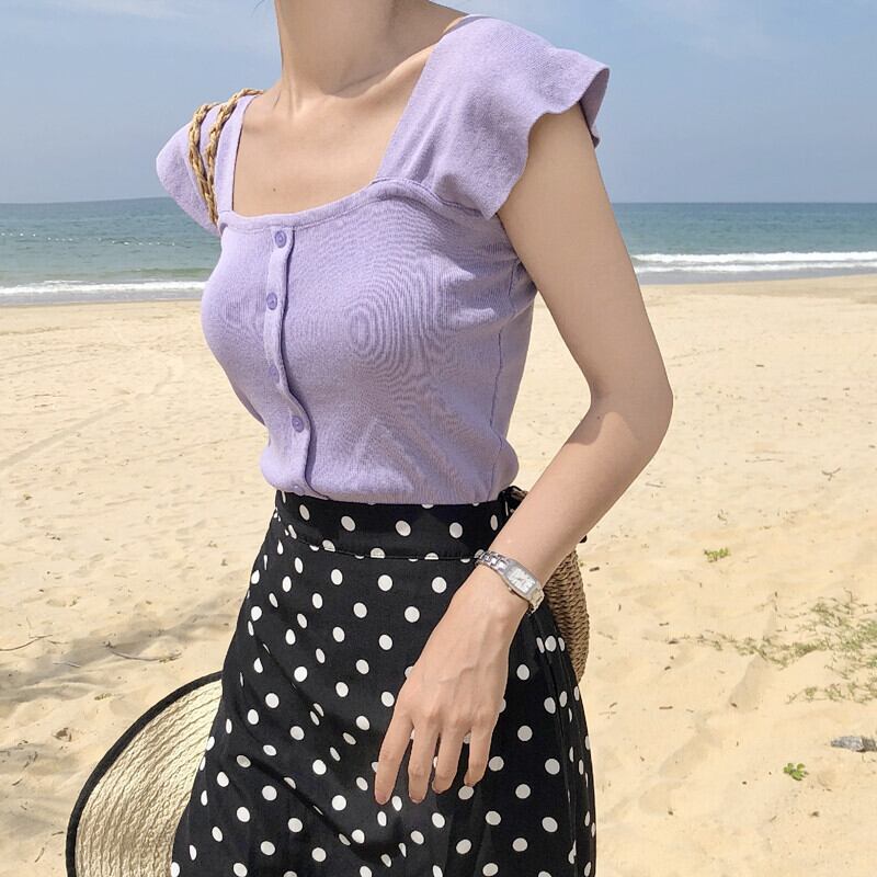 短いワイルドパープルのスリングチューブトップとニットの小さなベストの女性トップを備えたシックなスクエアカラーの春と夏のバージョン YY-ファッション79992458026