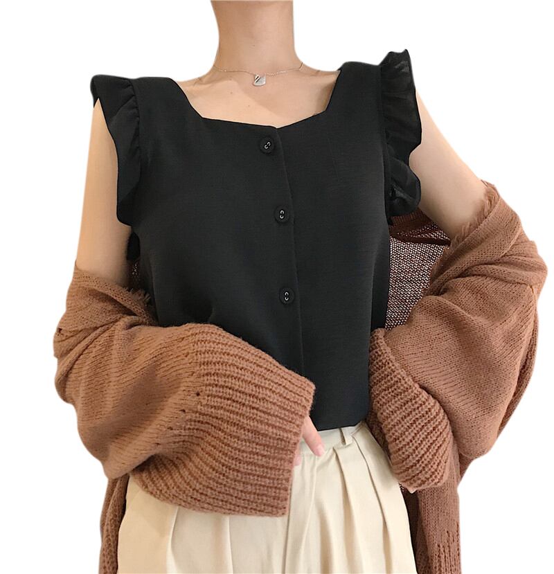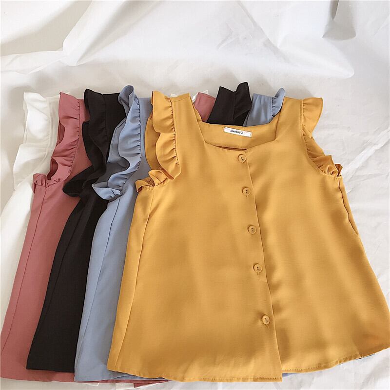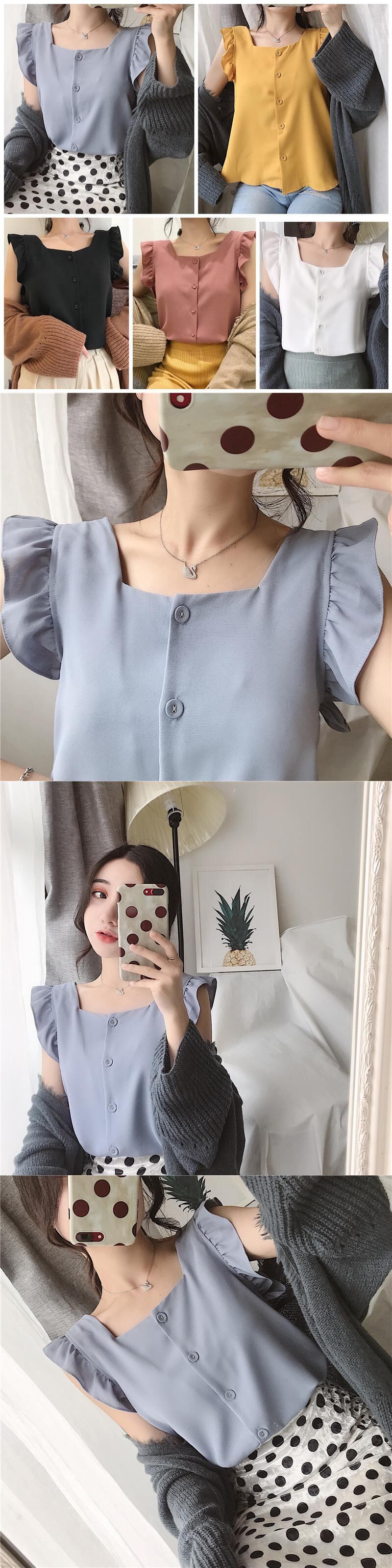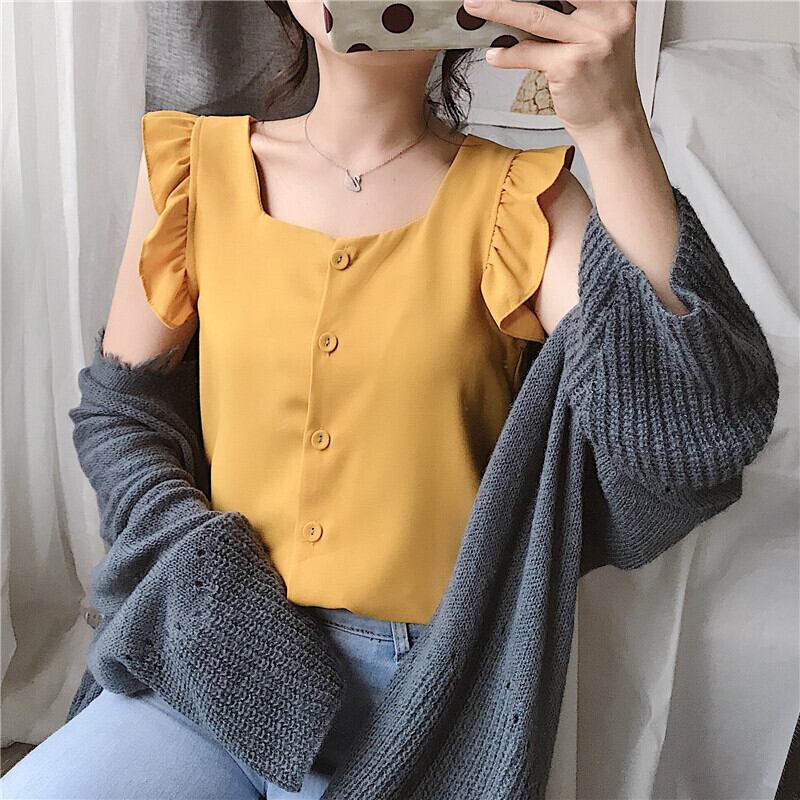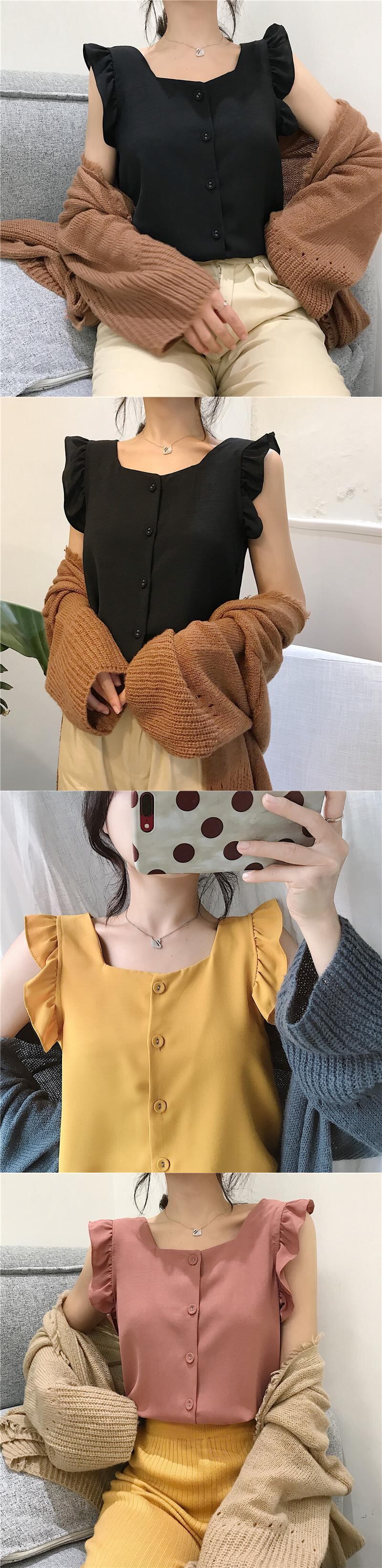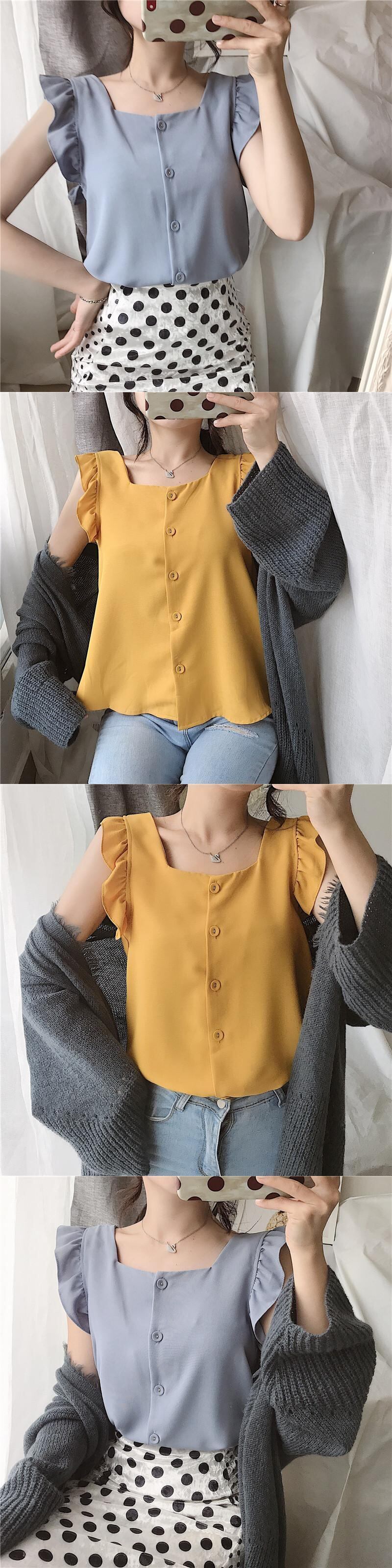 木製イヤベストシャツ女性2020年夏新しいシックな甘いシングルブレストノースリーブシフォンシャツトップ YY-ファッション47941271746