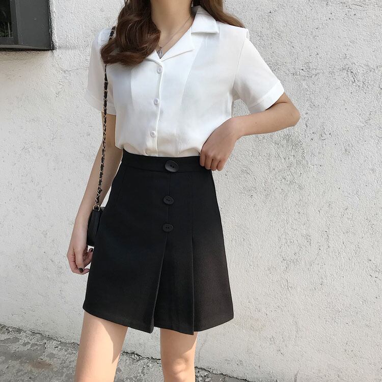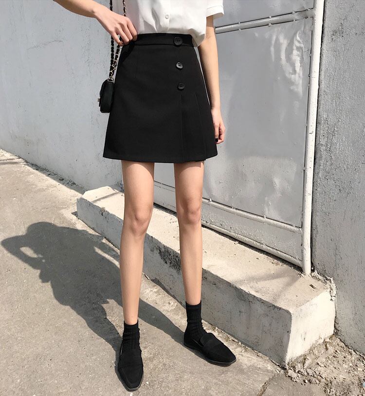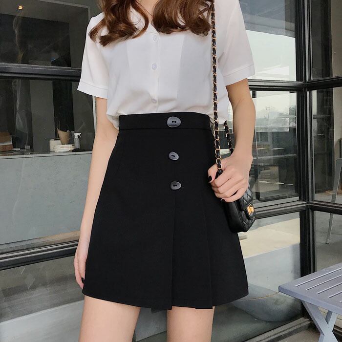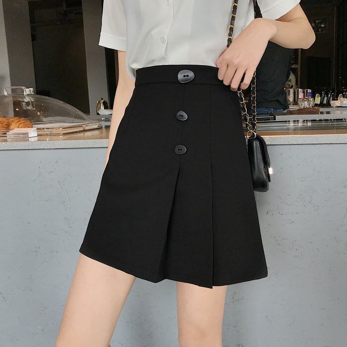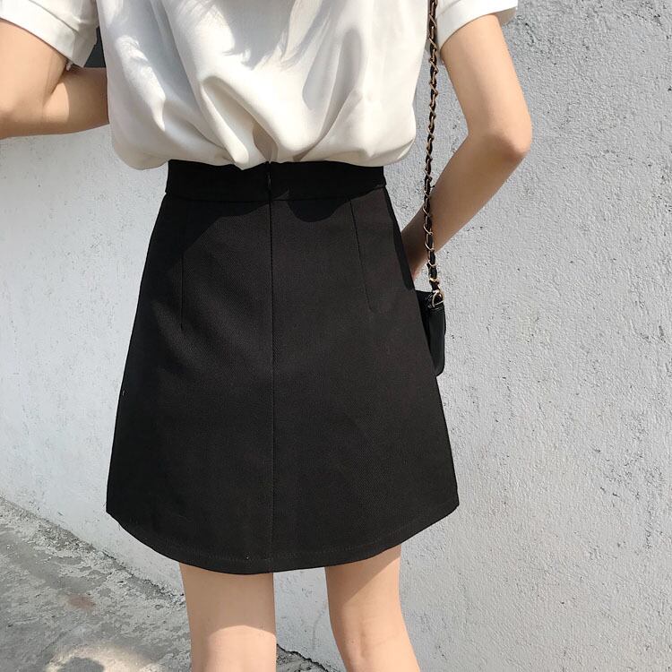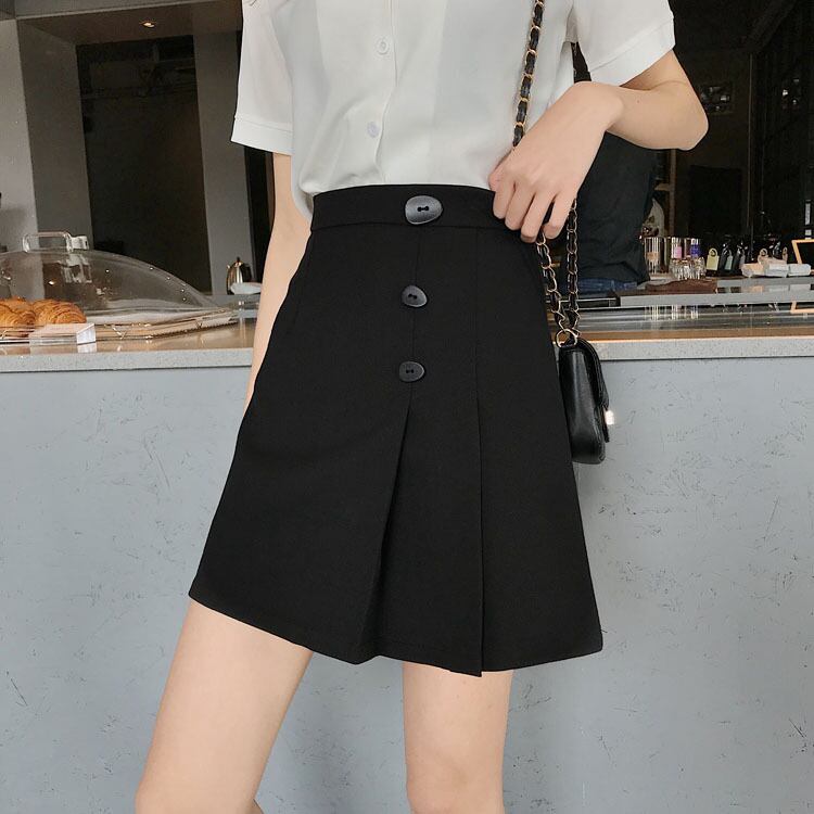 2020年夏の女性の新しい無地ブラックワイルドシン気質シングルブレストAラインスカートショートスカートトレンド YY-ファッション48946446599