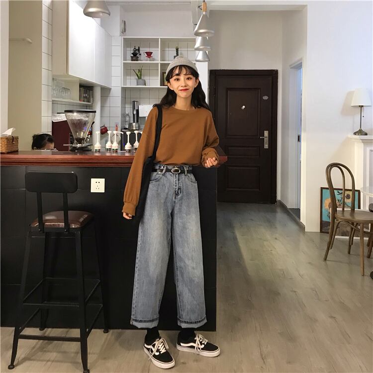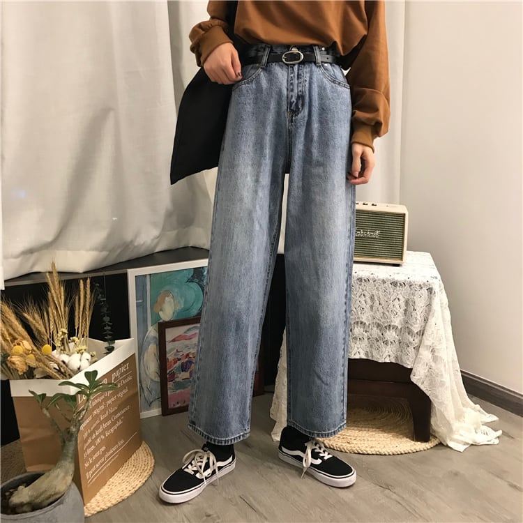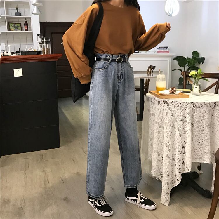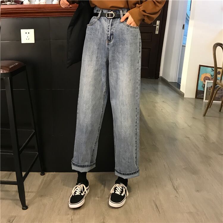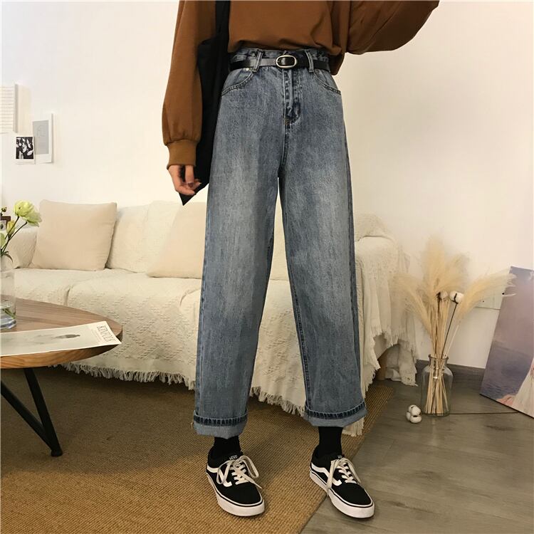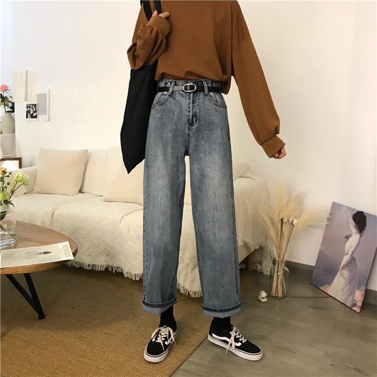 ストレートハイウエストジーンズレディース2020新しいルーズバージョンのワイルドシンスチューデントワイドレッグパンツパンツトレンド YY-ファッション87843490057