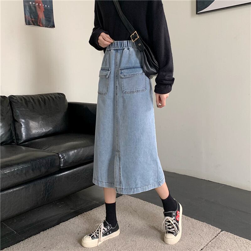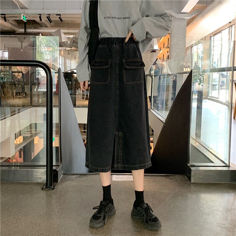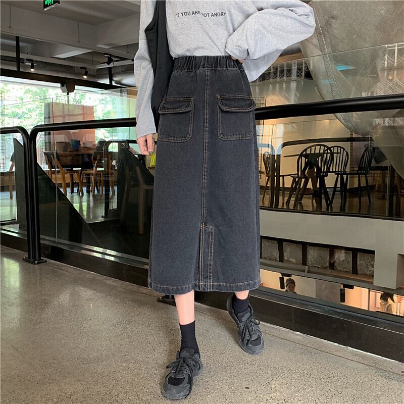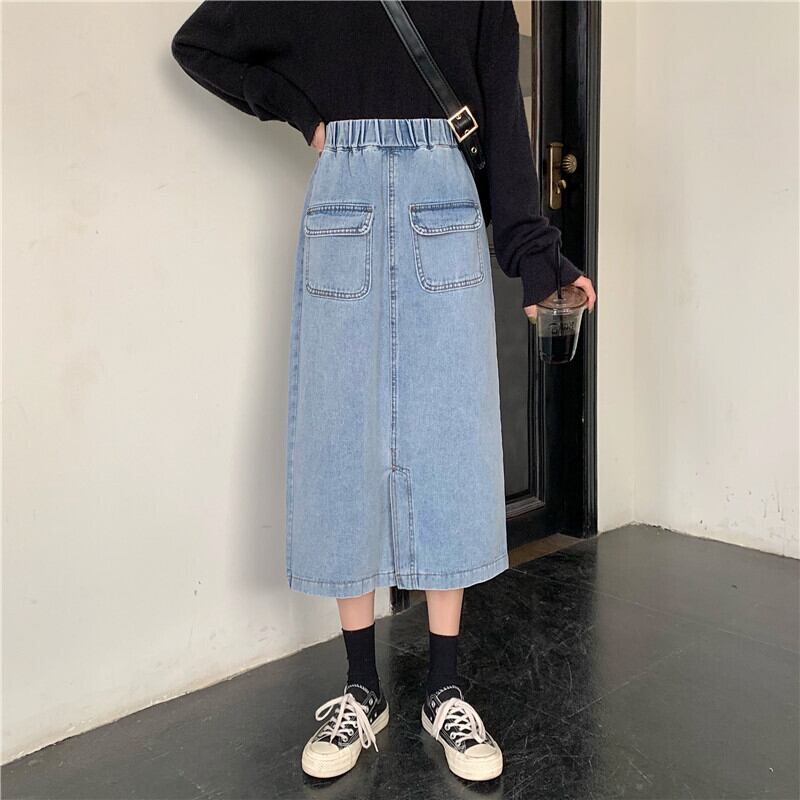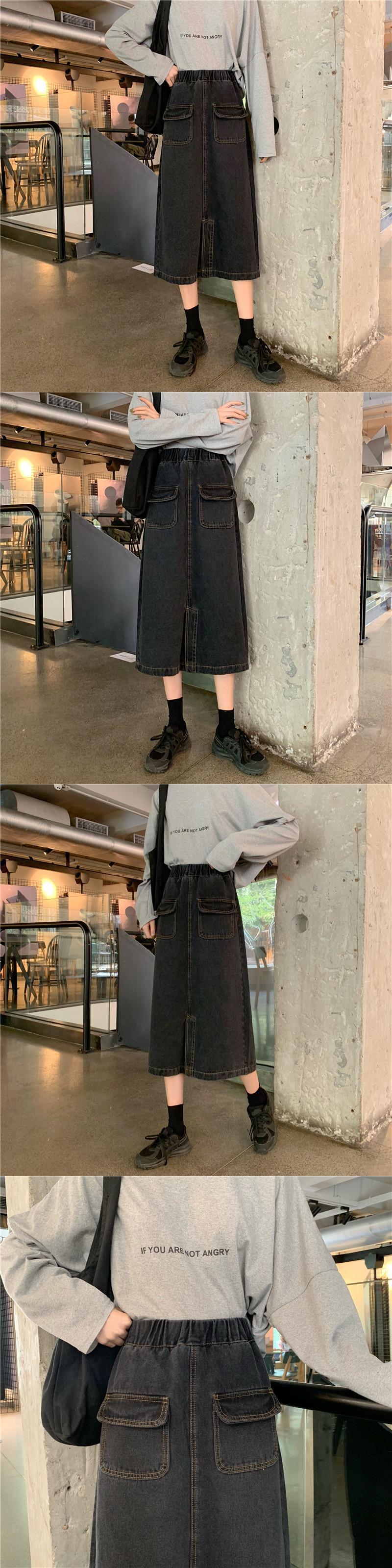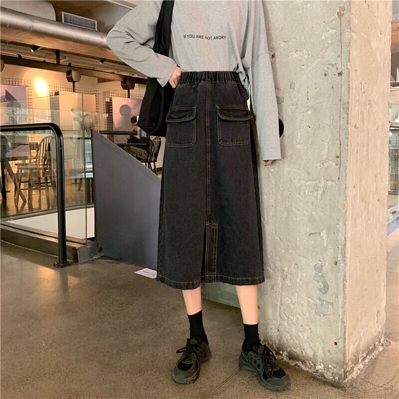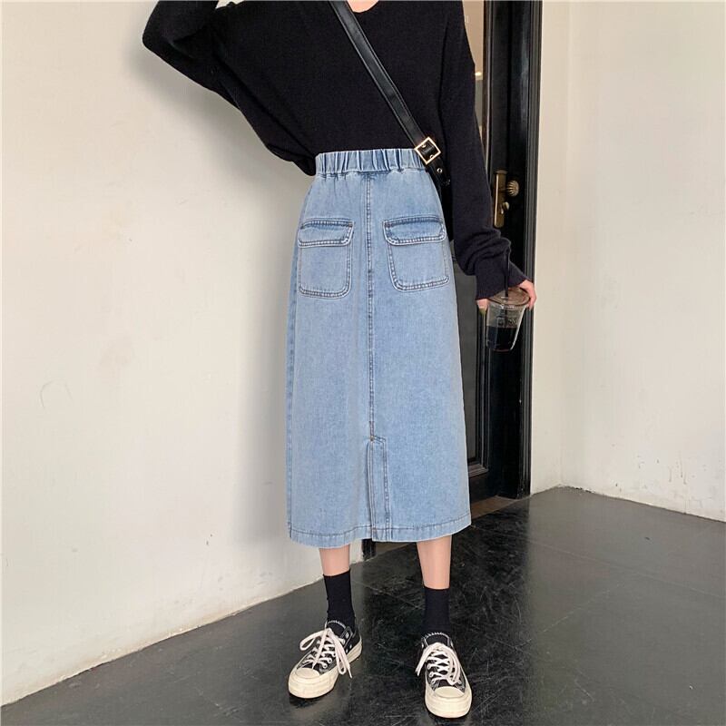 2020年夏新作ハイウエストスリムAラインスカートミドル丈スプリットデニムスカートスチューデントスカートレディース YY-ファッション61145892573