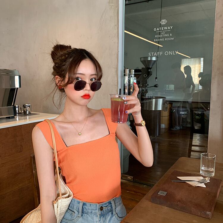 小さなフレッシュニットキャミソールレディースアウターウェア2020新バージョンの無地インナーベースシャツレディーススリムトップ YY-ファッション17509220167