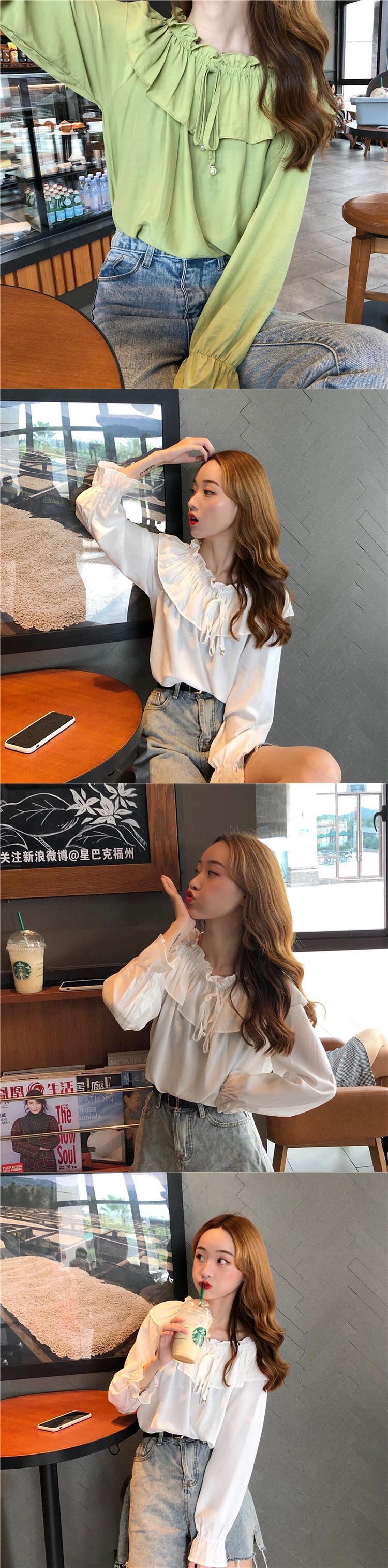 ウエスタンスタイルの年齢を減らす蓮の葉のレースアップシフォンシャツ女性バージョンルーズワイルド長袖シャツ2020年夏の新しいスタイル YY-ファッション50290309512