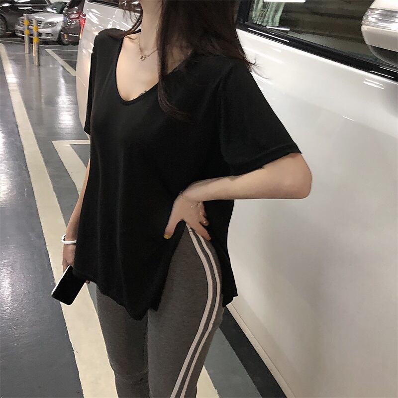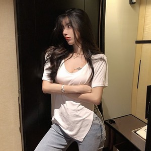 シックな新しいファッションの2020年夏バージョンは、カジュアルなルーズ半袖Tシャツオールマッチの薄いトップ女性のトレンドを分割しました YY-ファッション51900669051