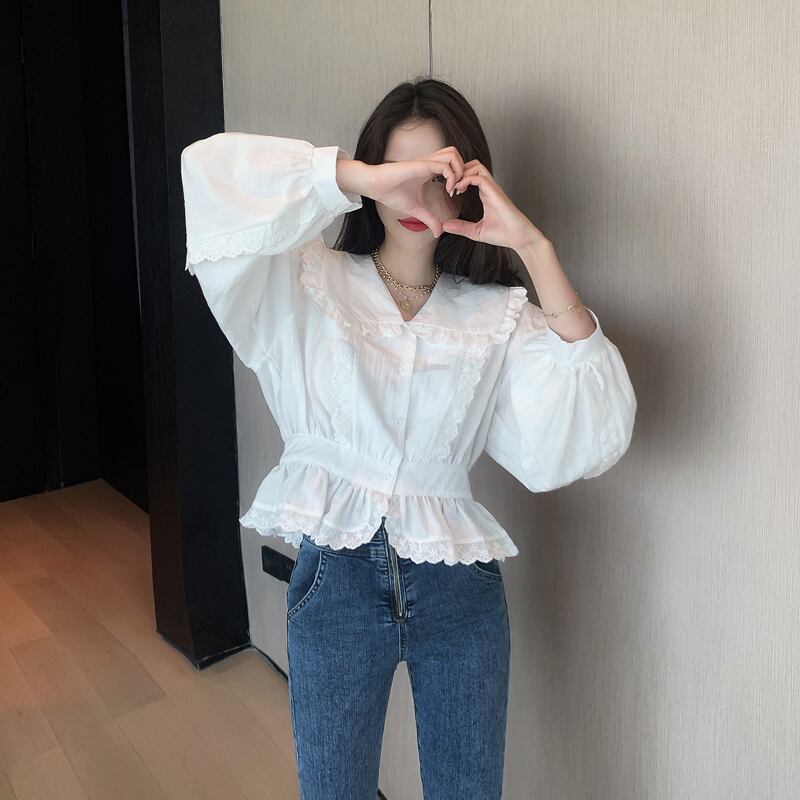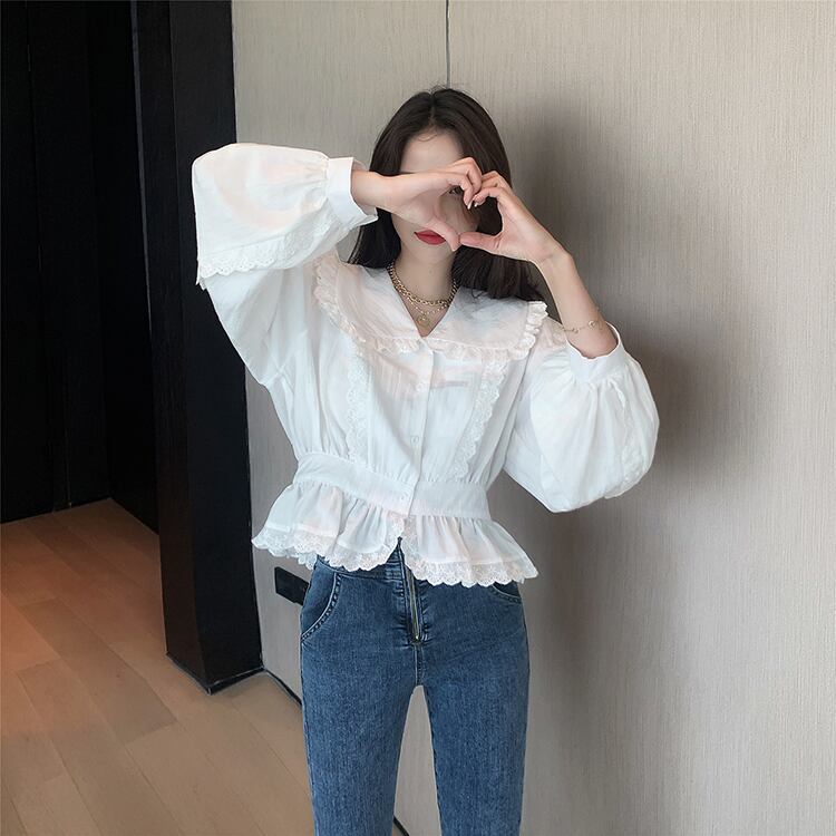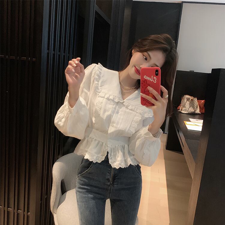 フランスの人形の襟の白いシャツの女性の短いスカートの小さいシャツのウエストのデザインのトップの2020年夏の新しいバージョン YY-ファッション95321831121