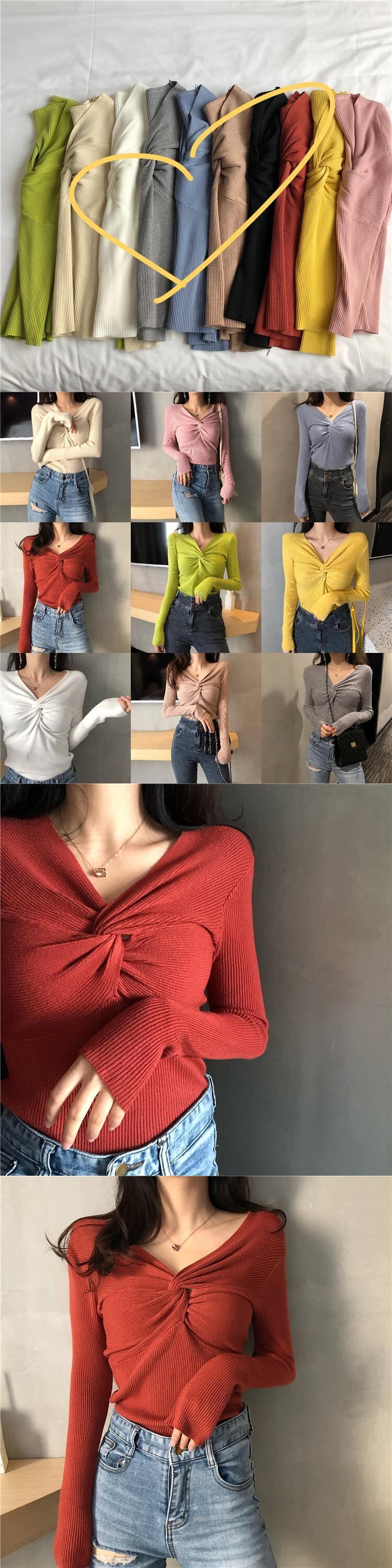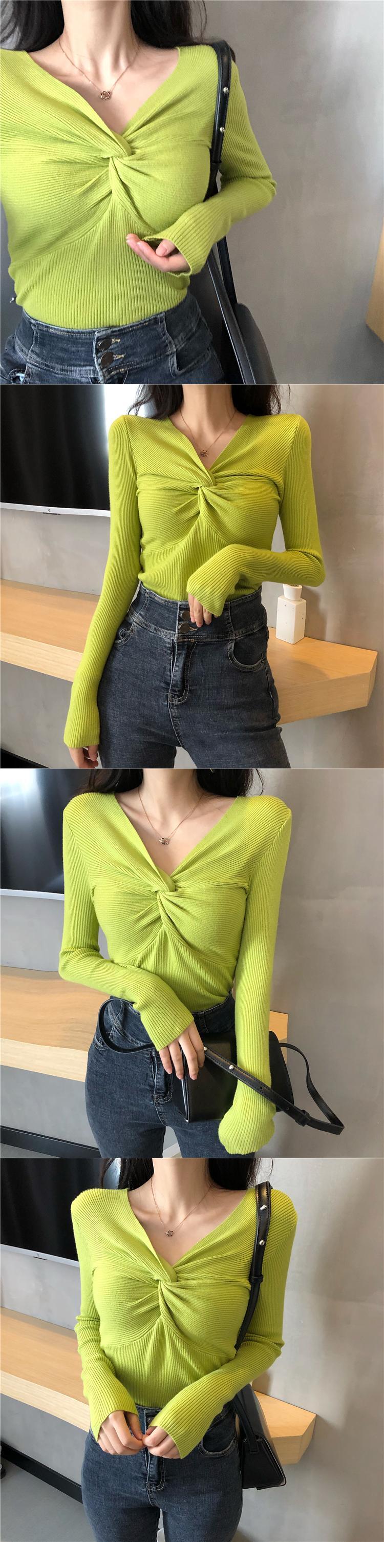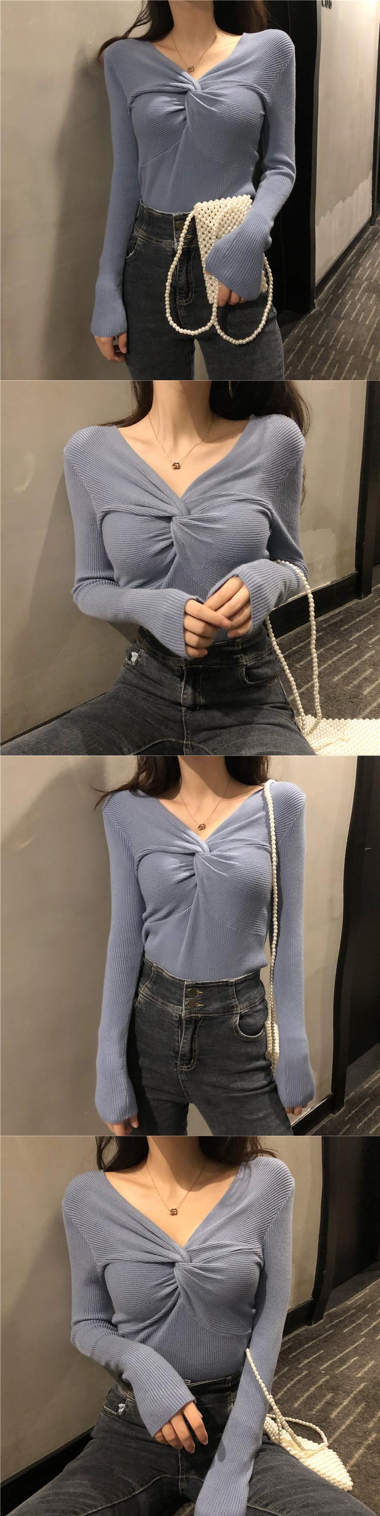 シックなスタイルのクロスノットVネック長袖ニットセータースリムボトミングシャツマルチカラートップ女性2020夏の新しいスタイル YY-ファッション73927502307
