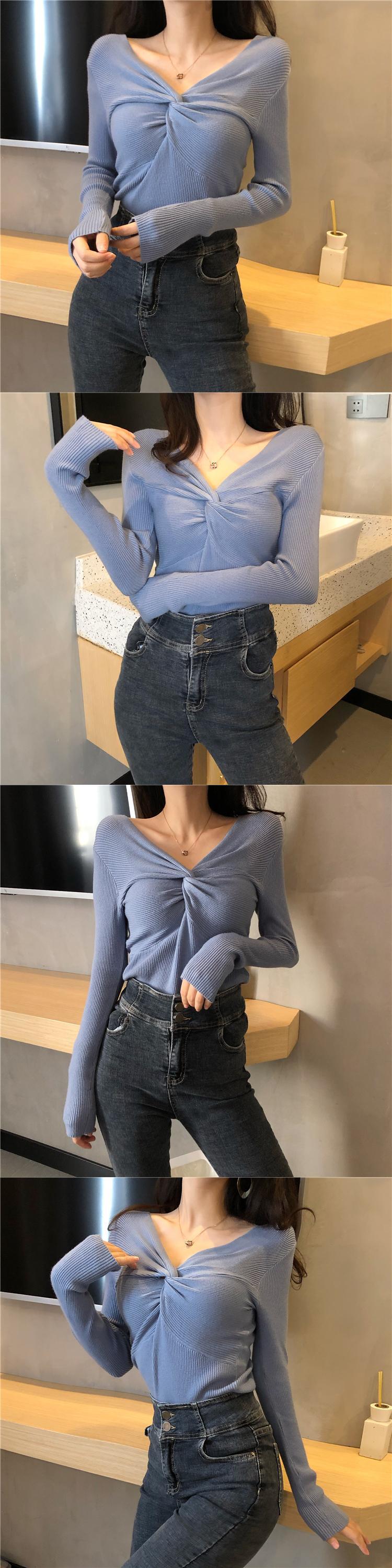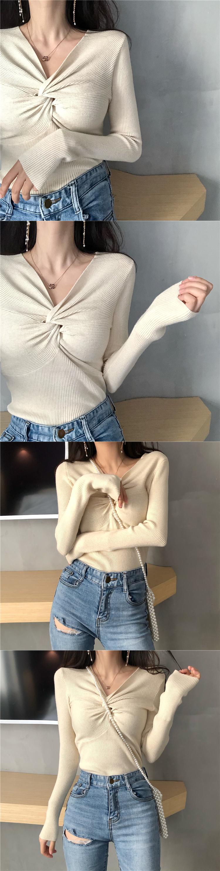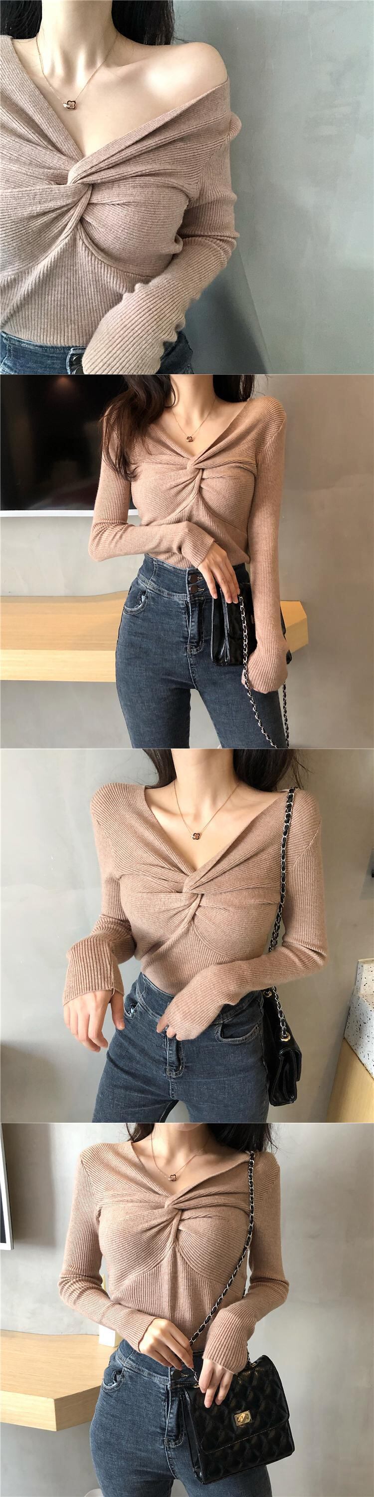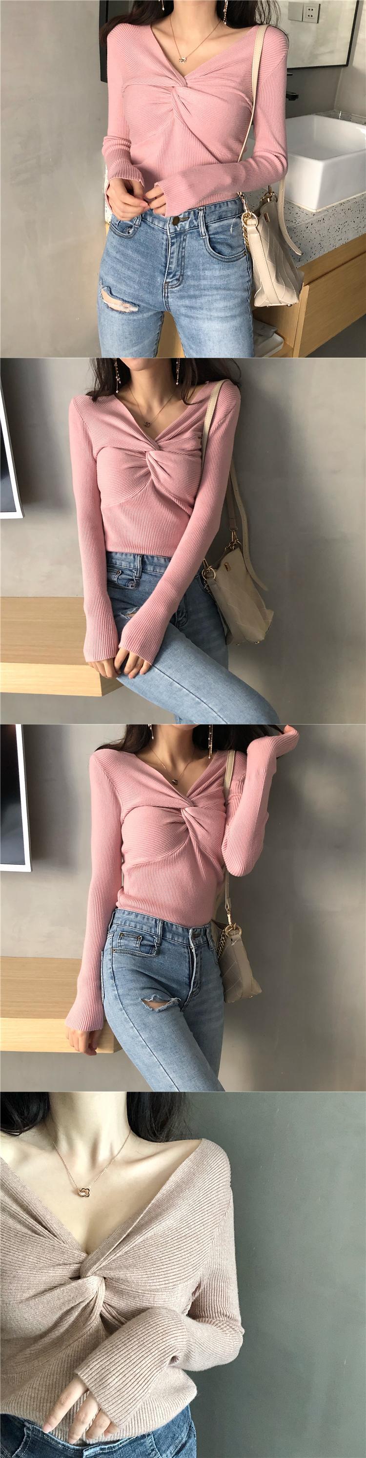 シックなスタイルのクロスノットVネック長袖ニットセータースリムボトミングシャツマルチカラートップ女性2020夏の新しいスタイル YY-ファッション73927502307