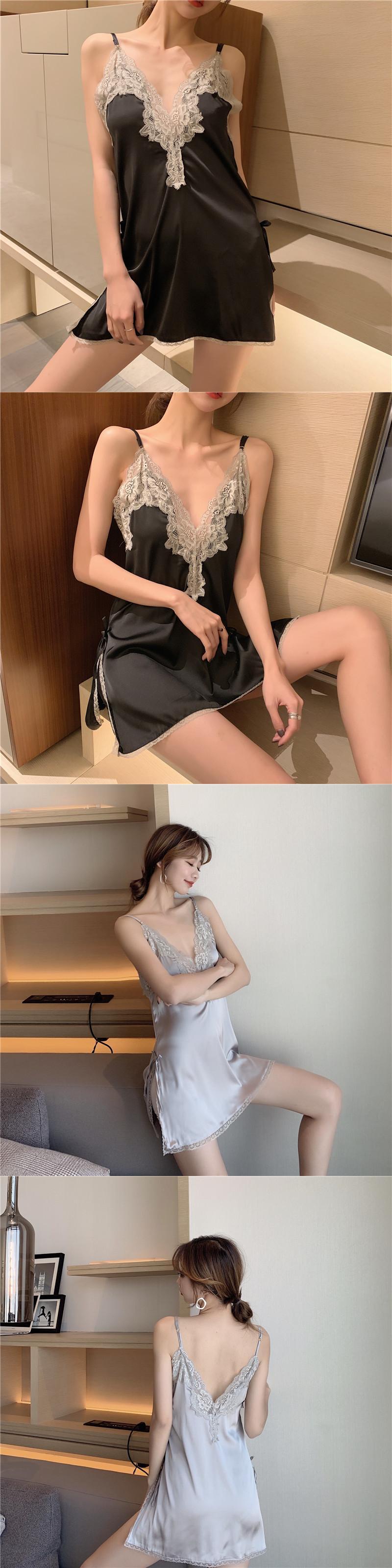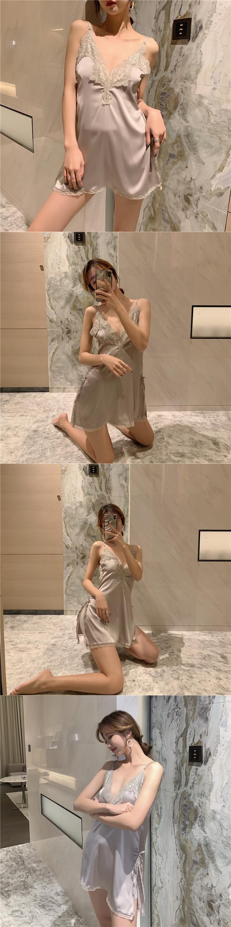 2020新しい女性のノースリーブローカットサイドスリットセクシーなレースVネックアイスシルク蝶結びサスペンダーナイトドレス YY-ファッション82126075218