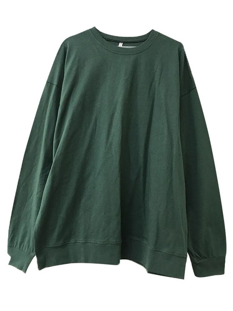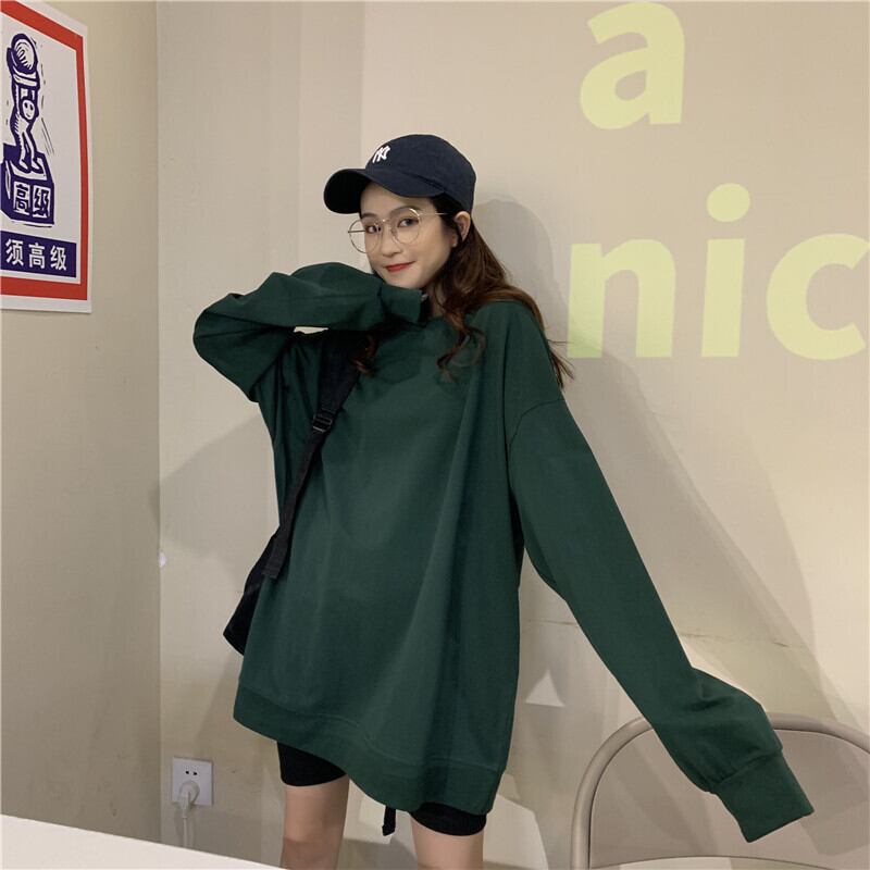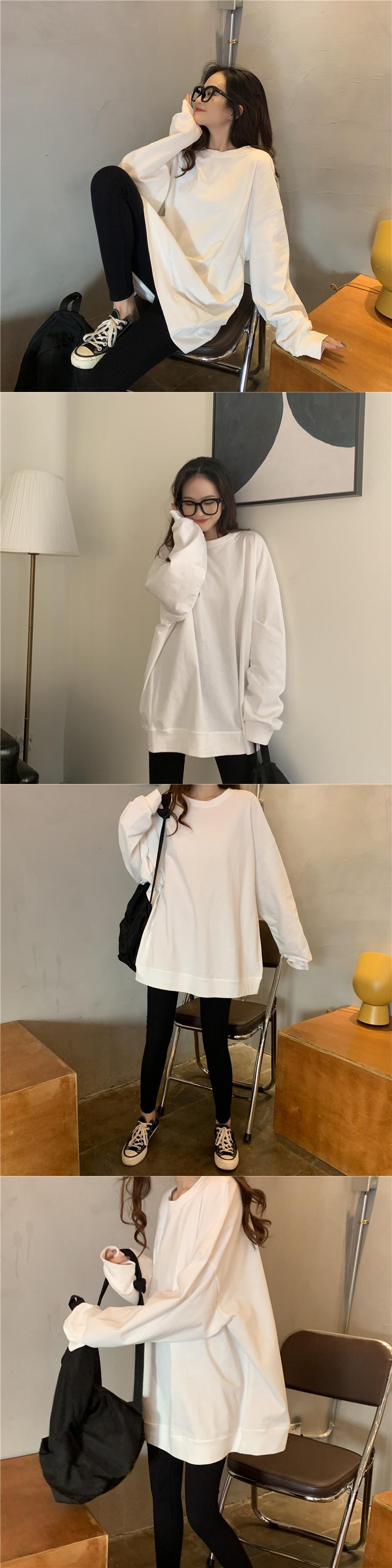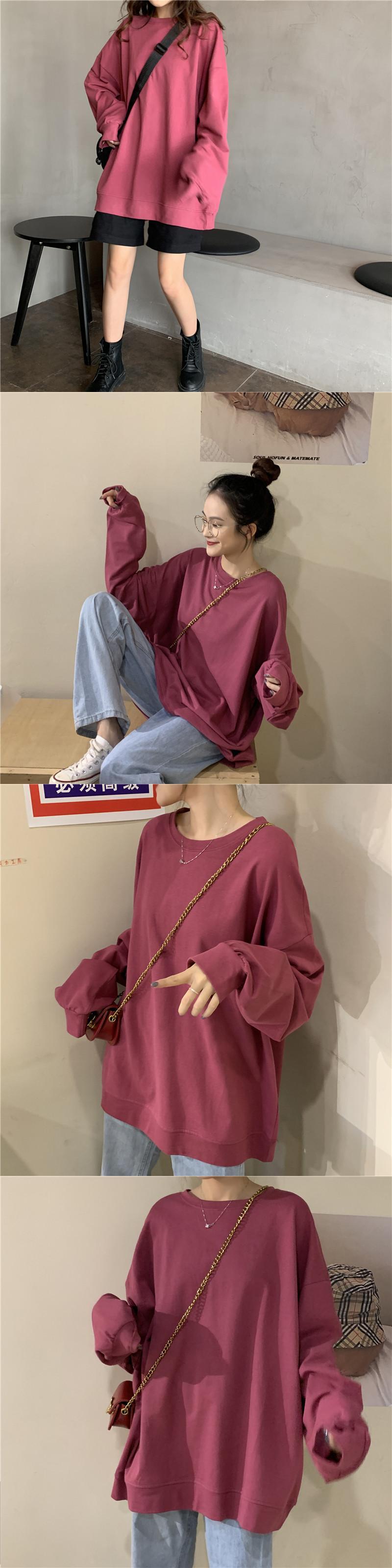 2020年春新作ミドル丈ルーズ&シン無地長袖Tシャツレディースシンプルボトミングシャツセータートレンディなラウンドネック YY-ファッション39785135303