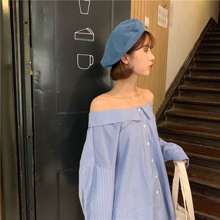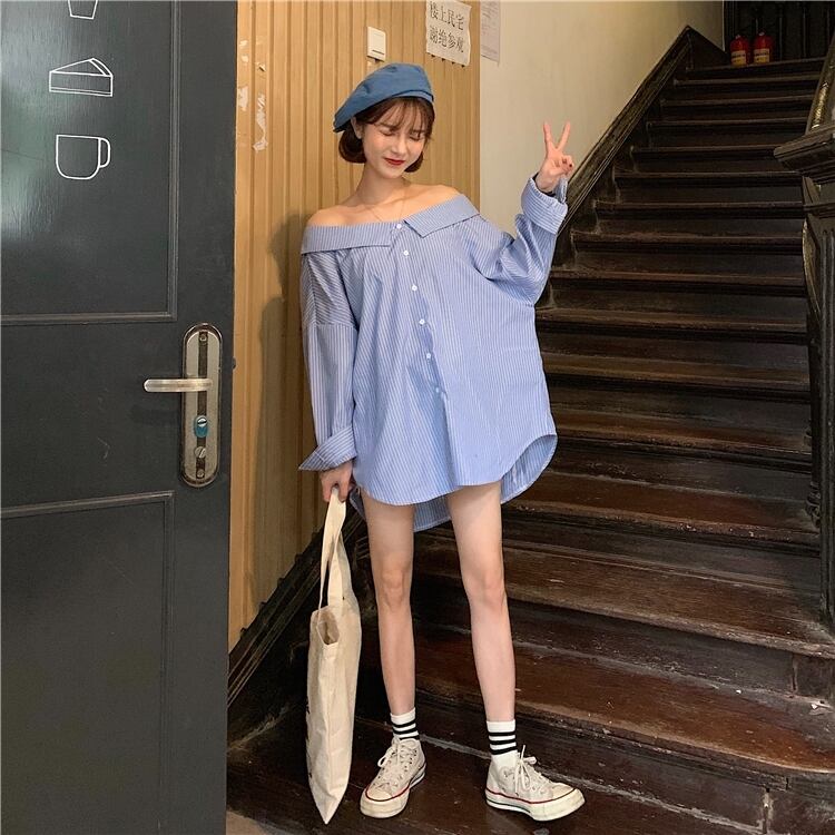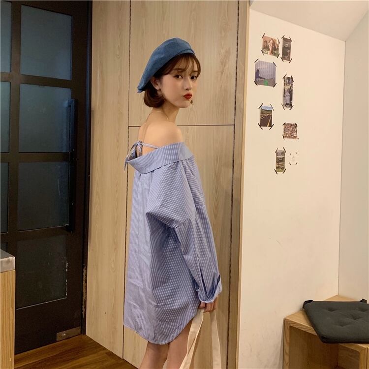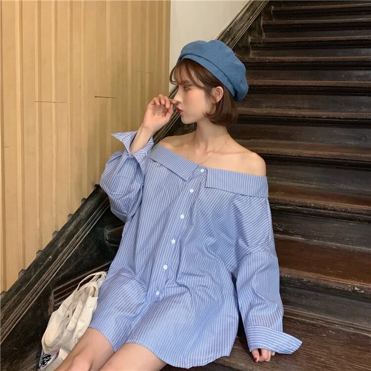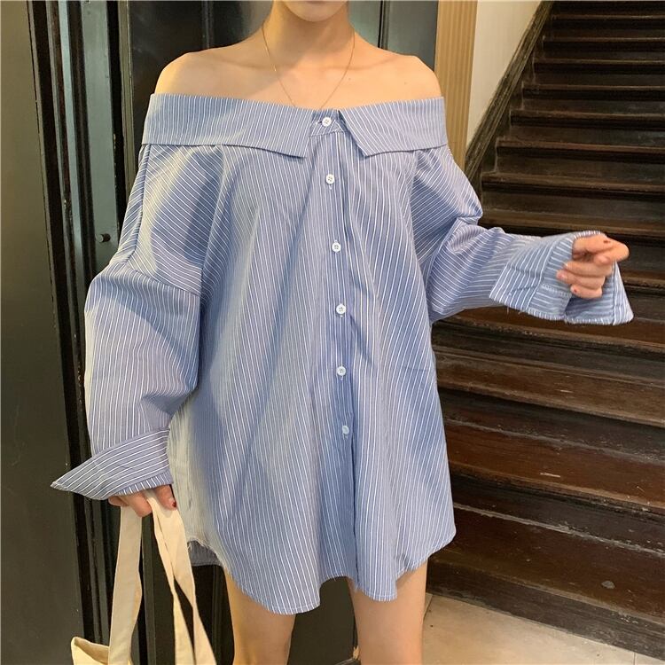 シックなルーズカジュアルワンワードネック注意マシンストライプシャツ2020初春新作長袖トップス婦人服のバージョン YY-ファッション26290506670