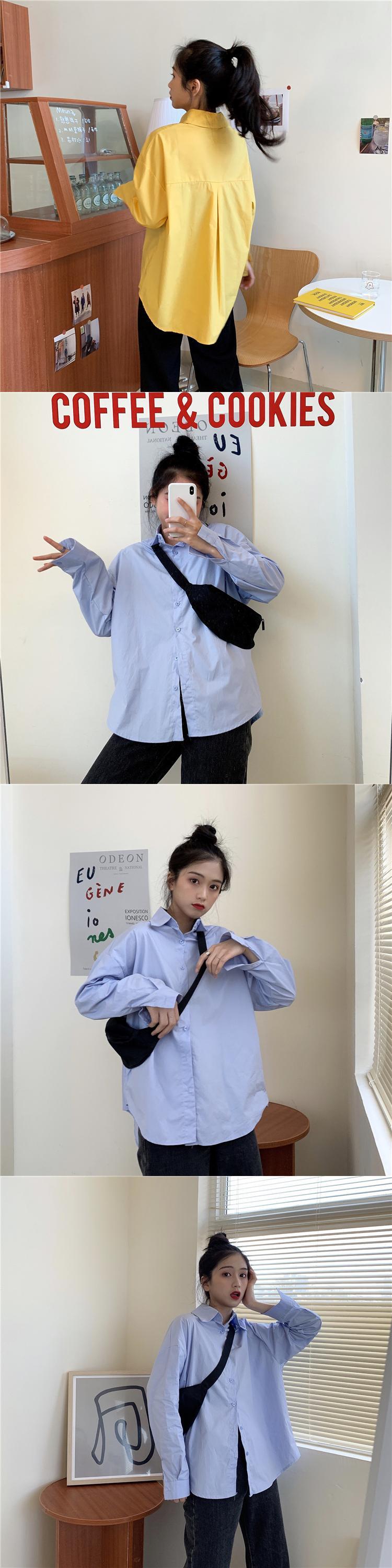 2020年春の新作レトロ香港フレーバールーズホワイトイレギュラーミドル丈シンプルPOLOカラーシャツジャケットレディース YY-ファッション71281274353