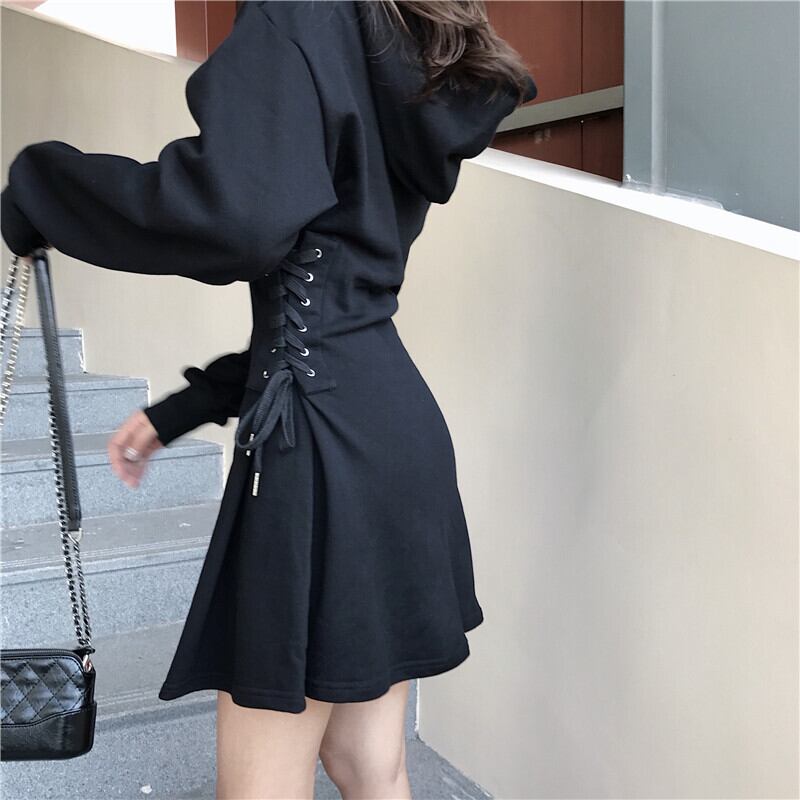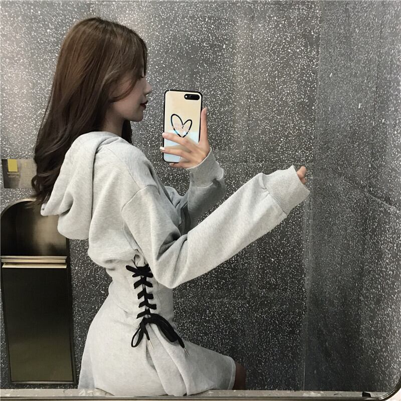 フードプルオーバー ソリッド カラードレス ウェストバンドスタイルカジュアルセーター サマー 夏物 ソリッドカラー YY-ファッション83426965691