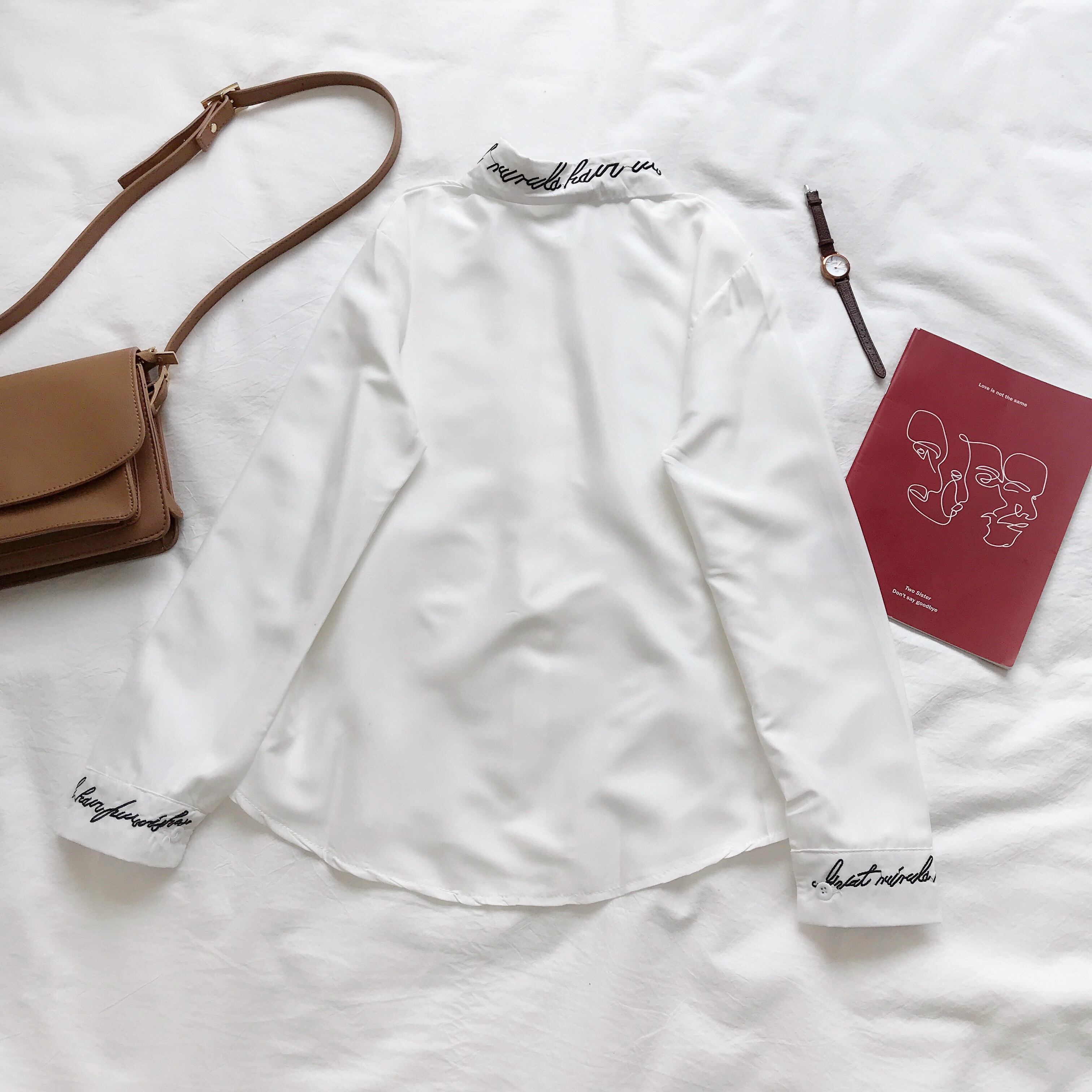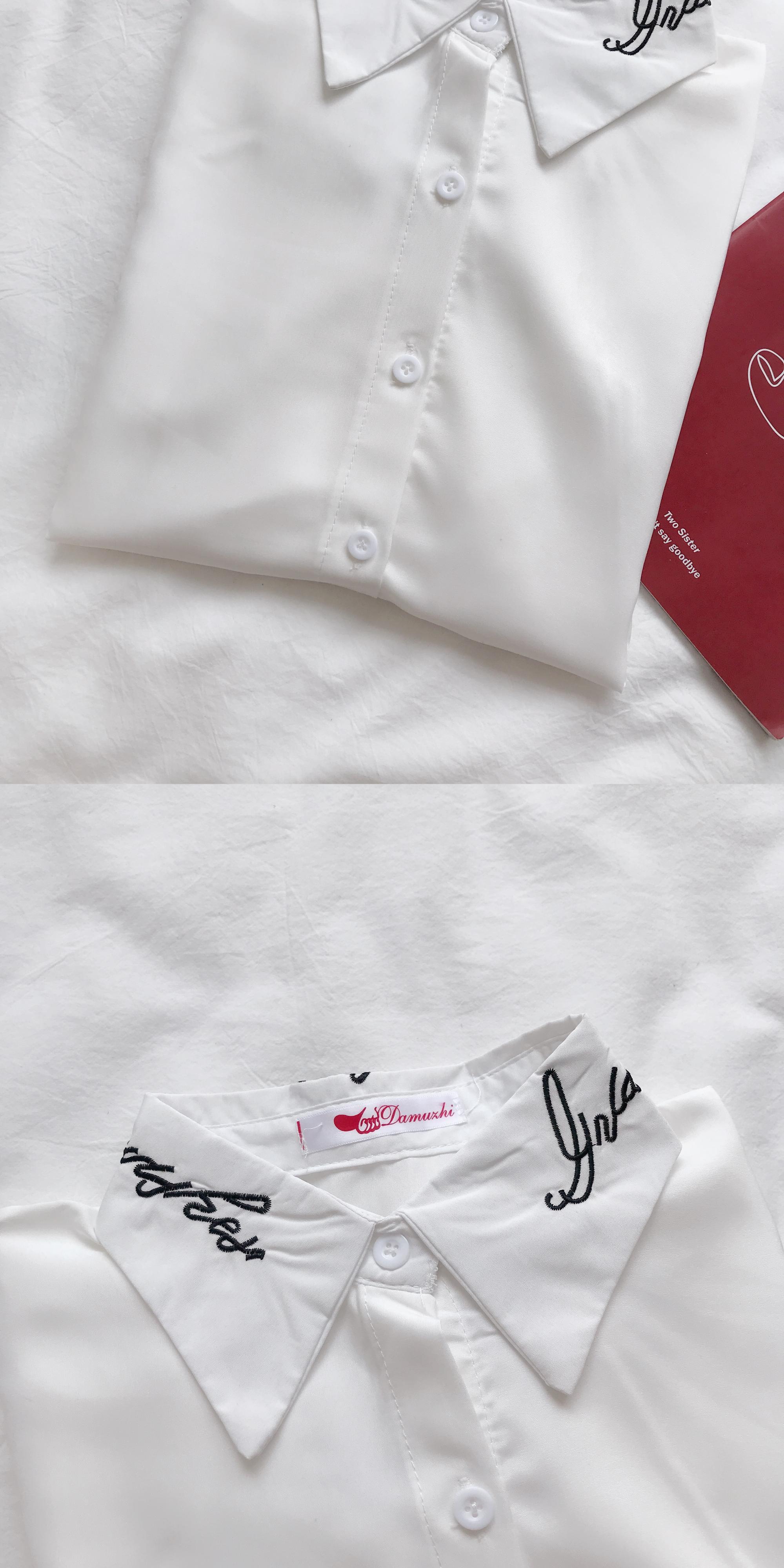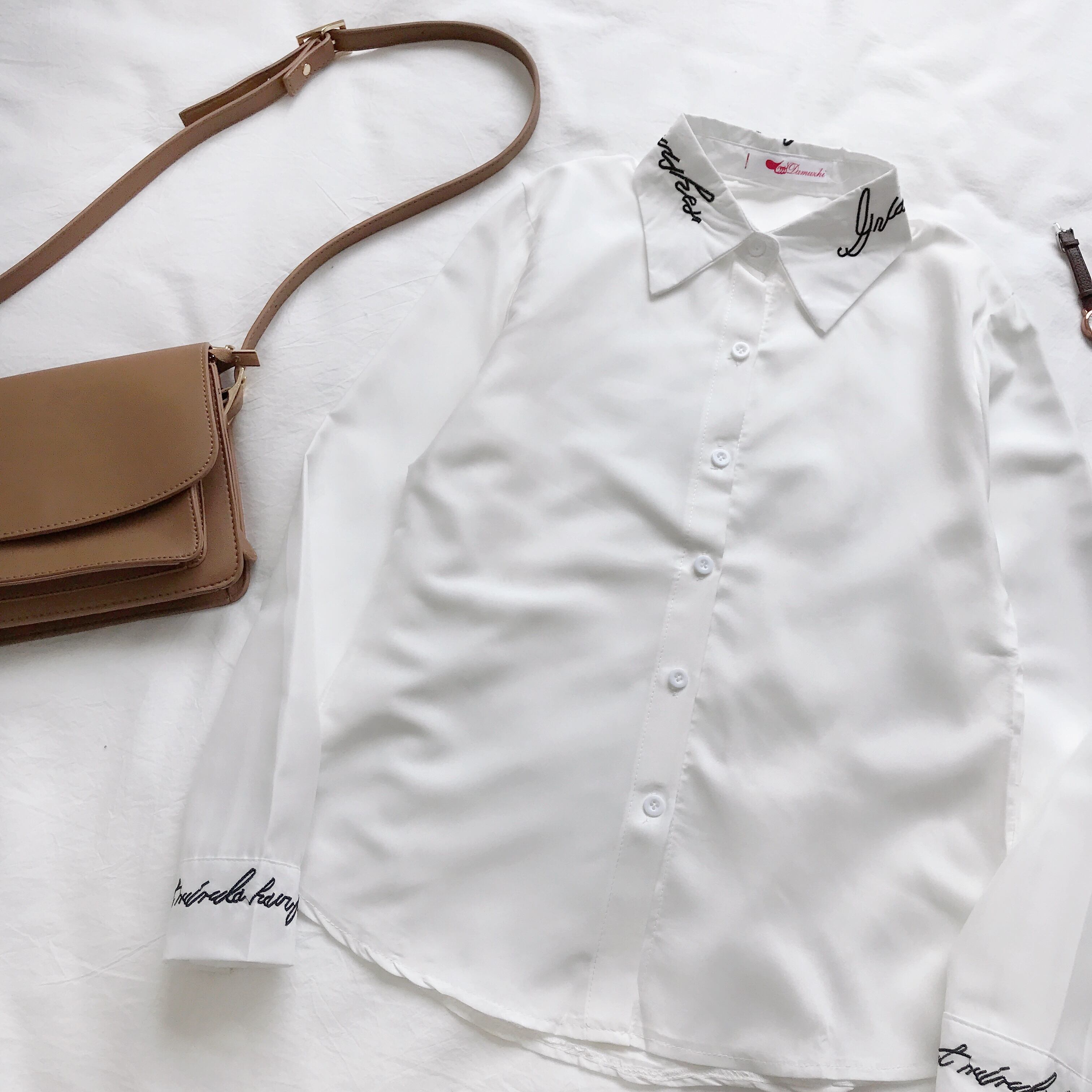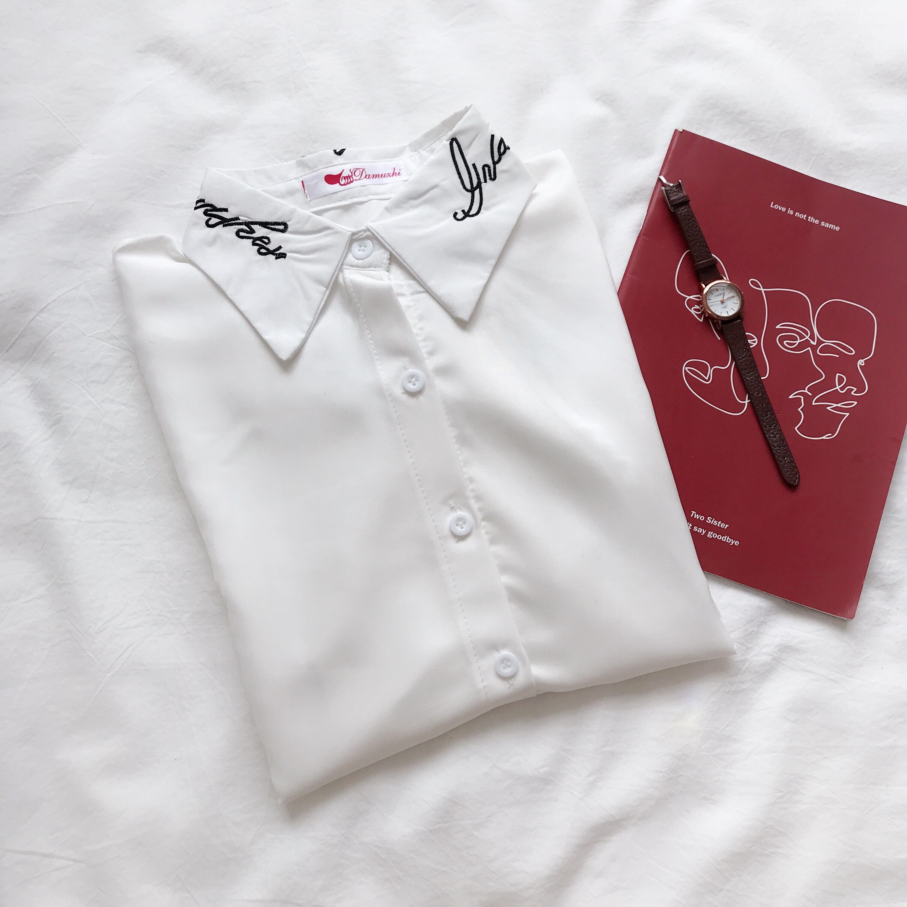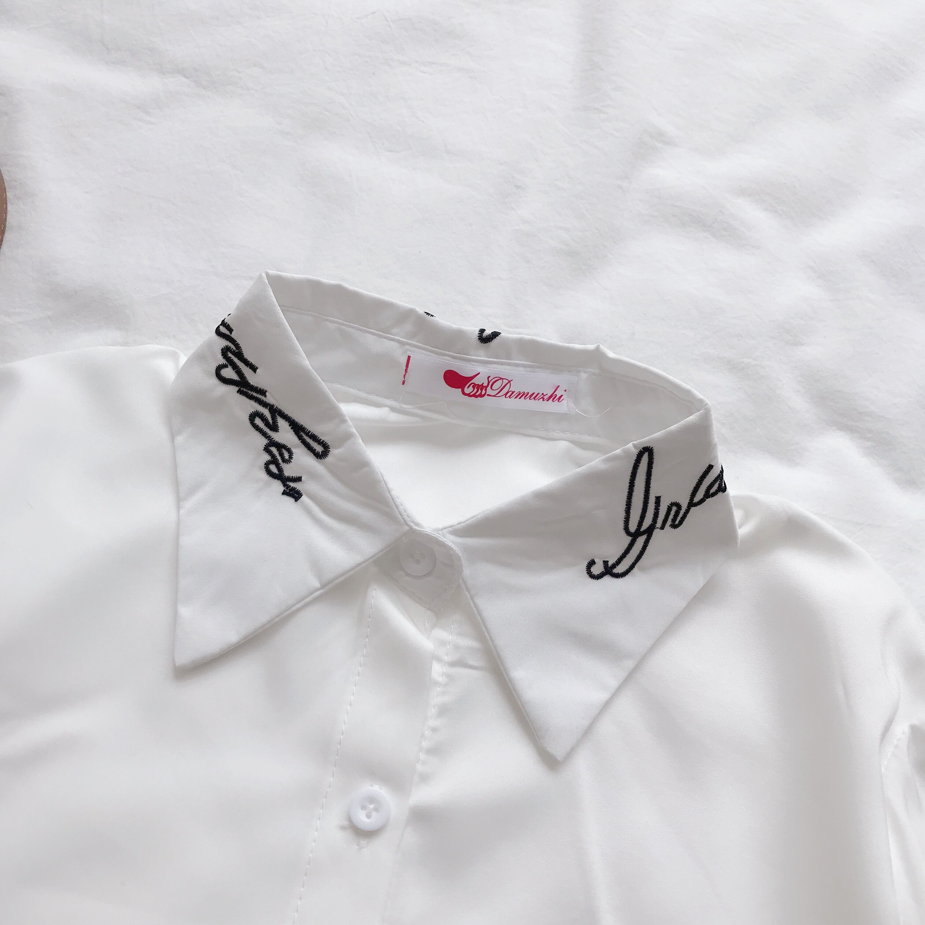 白刺繍無地シャツ長袖小フレッシュカレッジスタイルスウィートシック2020年夏学生女性トレンド YY-ファッション34582313266