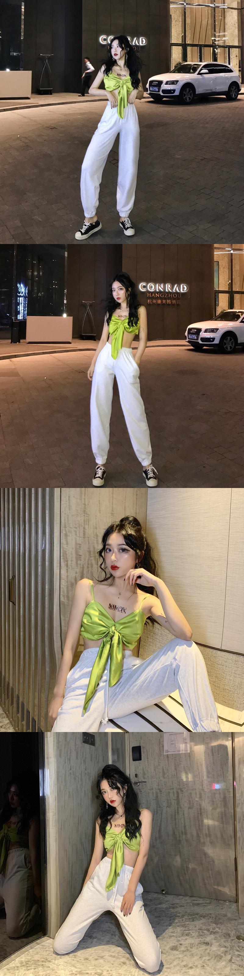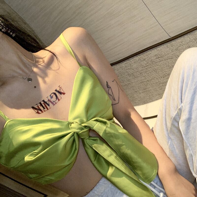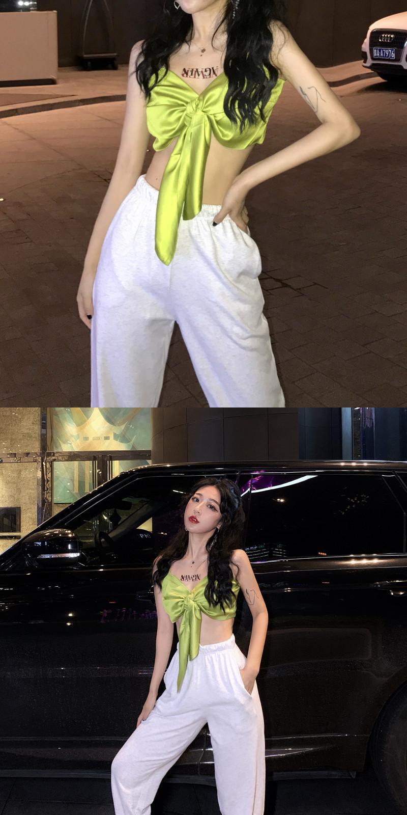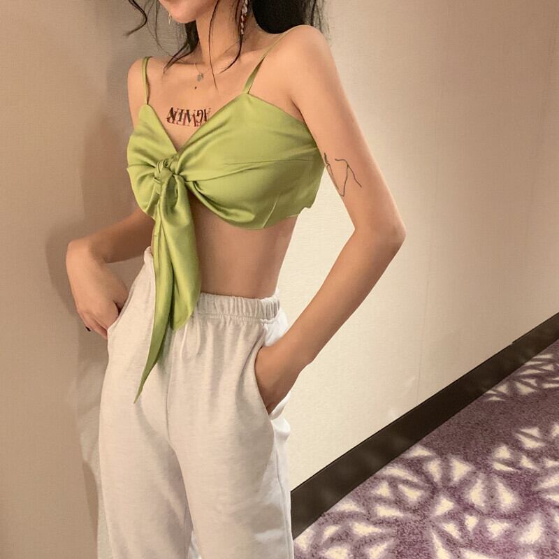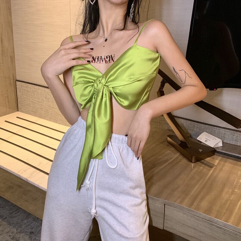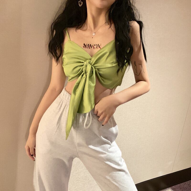 同じグリーンのボウスリングベスト、女性のケアセンス、機械で包まれたトップを備えた2020年夏の新しいヒョナ YY-ファッション88890922439