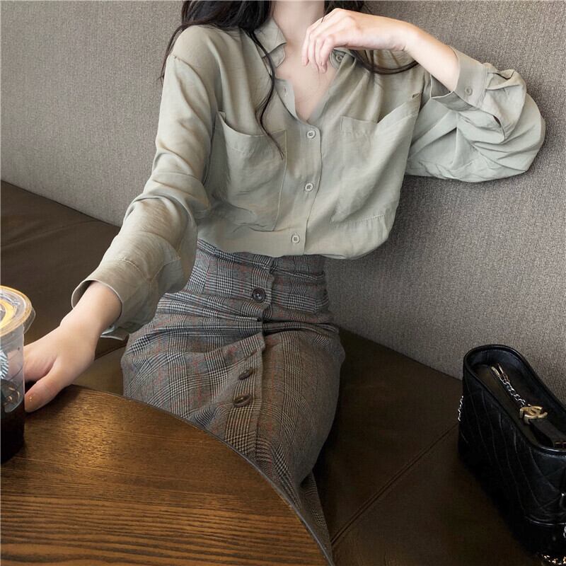 シャツ スタンダードルーズカラーカーディガントップス サマー ロング レトロ 夏物 YY-ファッション58317152708
