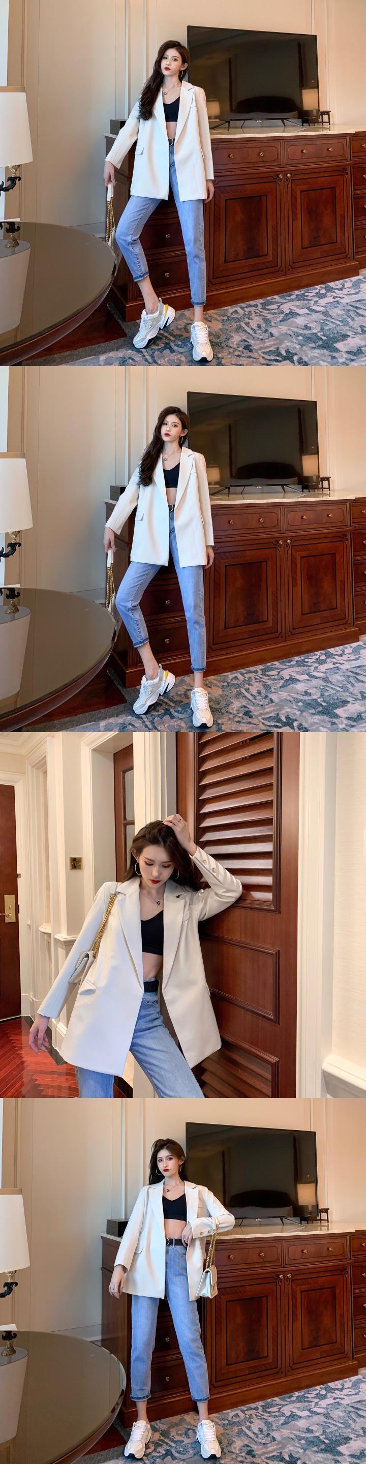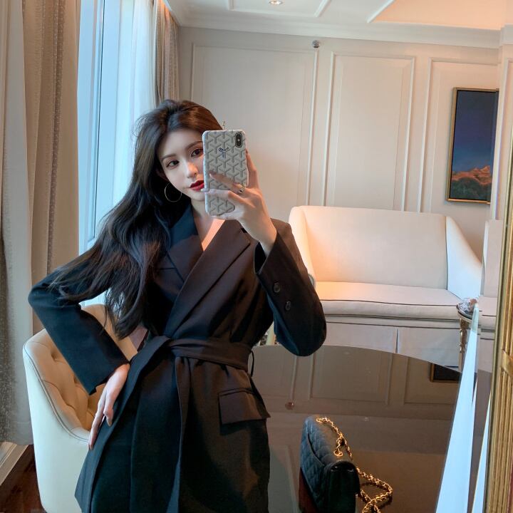 気質ウエスト無地コートルーズ2020夏新レトロシック長袖ミドル丈スーツ女性 YY-ファッション68193907953